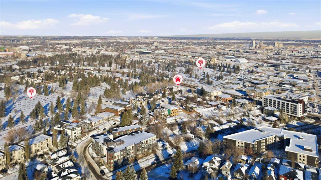 Rare opportunity to own an impeccably located 2-storey townhome. Enjoy true urban convenience, situated within easy walking distance to downtown, trendy 4th Street, and the C-Train. Experience elevated comfort with the added Central Air Conditioning system: a premium, high-efficiency unit that provides quieter, superior cooling compared to the standard model. This spacious home features 2 Bedrooms, 3 Full baths, plus a convenient powder room. The main level is bathed in natural light, thanks to abundant south-facing windows in the living room. The bright kitchen boasts stainless steel appliances, a modern tiled backsplash, and a breakfast bar. Upstairs, the primary bedroom serves as a private retreat, complete with an ensuite bathroom and a generous walk-in closet. The full basement development is an entertainer’s dream, featuring a massive recreation room with a stylish wet bar and beverage cooler, as well as a fourth full bath. Throughout the home, you’ll find tons of valuable indoor storage space. Outside, the front verandah, perched on a hill on a quiet, mature street, offers a perfect outdoor entertaining space with additional covered storage underneath. The unit comes with one assigned outdoor parking stall, supplemented by numerous street parking options. With low condo fees, this home is truly move-in ready with quick possession available. Don’t miss your chance to own this wonderful property!