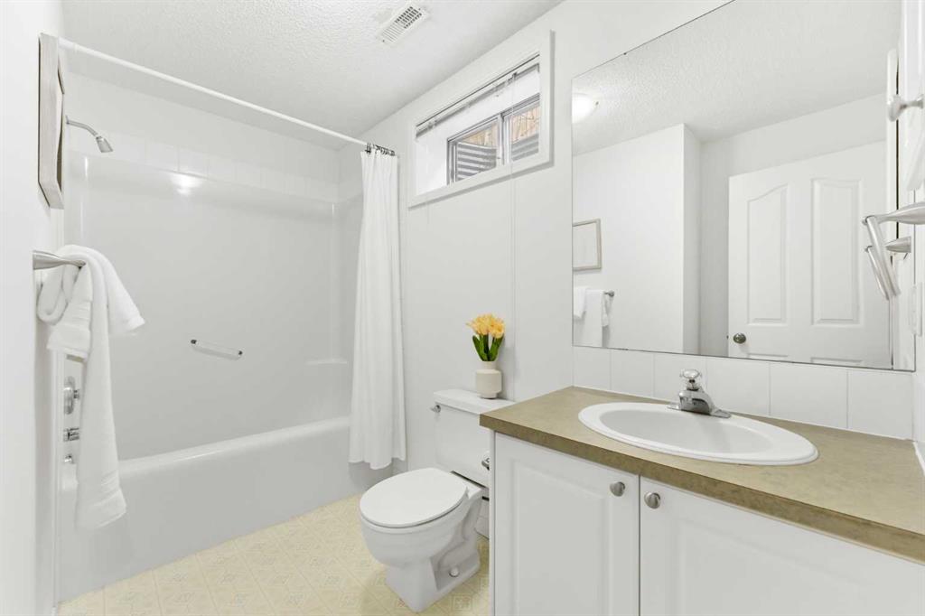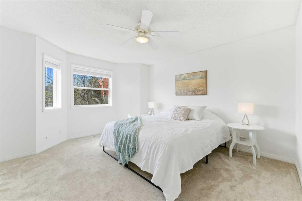 Upstairs, you’ll find two generously sized bedrooms, each with its own walk-in closet and ceiling fan. The upper level also features a spacious 3-piece bathroom with a jetted tub, along with a skylight that enhances the bright, airy feel of the home.