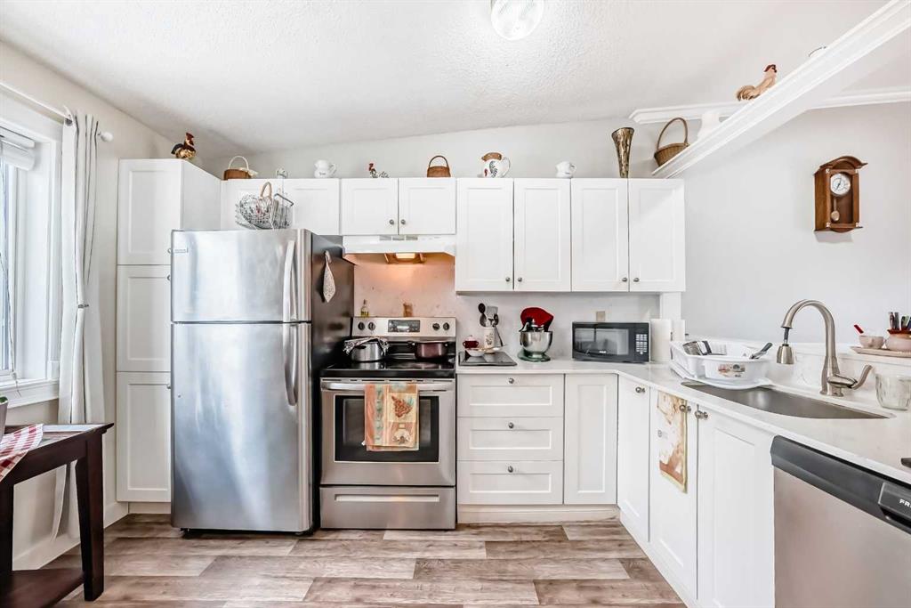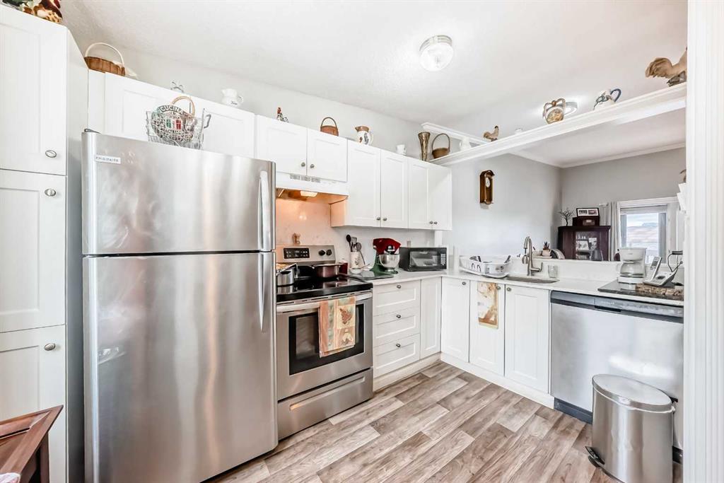 Move-in ready and beautifully updated, this charming bi-level condo has been thoughtfully upgraded throughout. The kitchen has been opened to the main living area, featuring modern cabinetry, granite countertops, and updated flooring—perfect for both everyday living and entertaining. The bright, open-concept dining and living space is filled with natural light from patio doors that lead out to a private deck. A stylishly renovated 2-piece bath with granite counters completes the main level. Downstairs, the fully finished lower level offers three spacious bedrooms, all with large windows. The primary bedroom is generously sized, while the second bedroom is ideal for guests or family. The third bedroom is currently used as storage but can easily be converted back. A full 4-piece bathroom and convenient laundry area are also located on this level. Additional upgrades include a newer furnace for added peace of mind. Ideally located close to schools and within walking distance to shopping, this home is a fantastic opportunity for first-time buyers, downsizers, or investors. Shows exceptionally well!