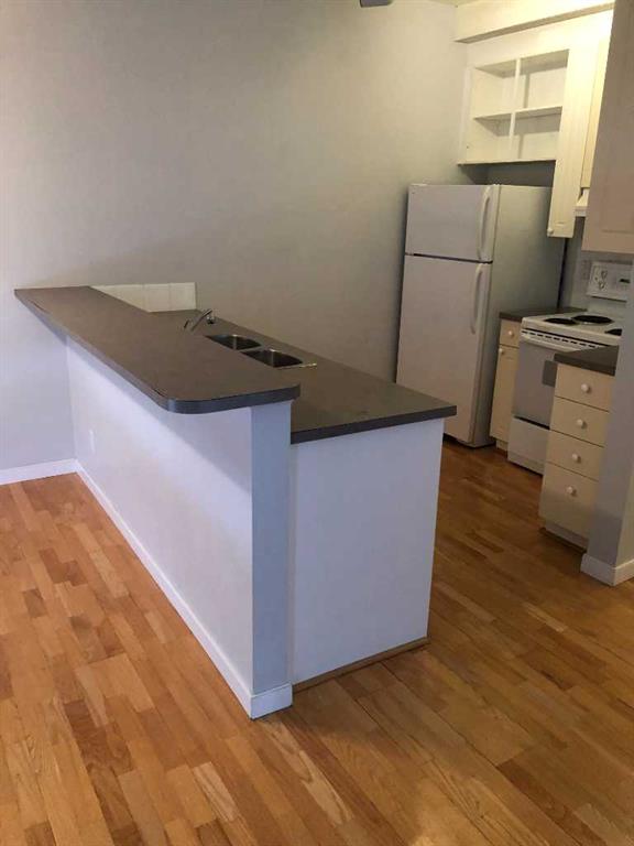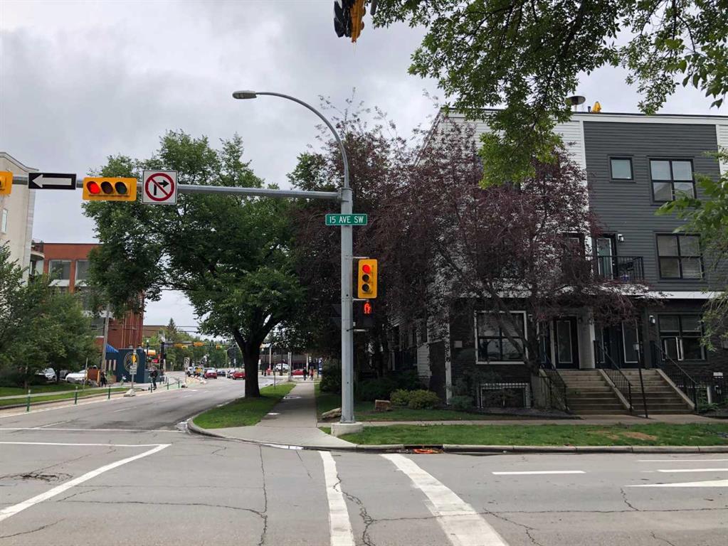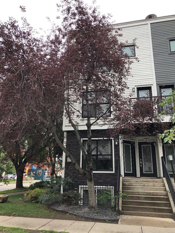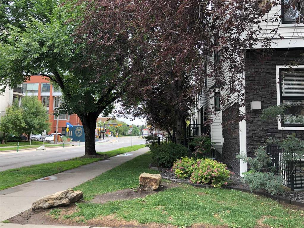 LOCATION LCATION LOCATION!!!! steps from 17 ave and TONS of restaraunts, bars, and shopping. This quaint end unit is on TWO LEVELS, and has a bright open kitchen/living area with lots of windows and natural light. Lower level has two large bedrooms, MASSIVE walk-in closet in the master, full bath plus utility and SEPERATE LAUNDRY room with included stacked washer/dryer. One oversized underground parking spot plus storage locker right in front of the parking stall. Needs some TLC but is a stellar investment close to all the action and the new arena!