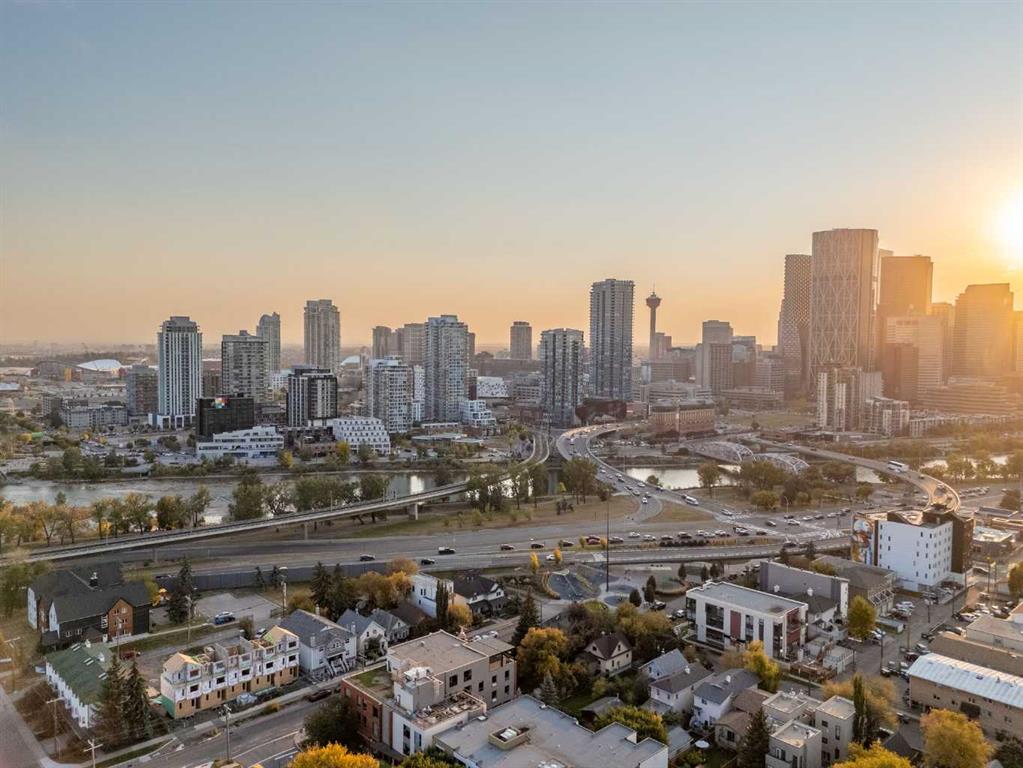Incredible opportunity to own one of the best priced semi-detached luxury infills in the inner city. A beautiful home in the heart of Bridgeland offering all the perks of city living with no condo or HOA fees. A 5 minute walk from Downtown, Bow River Pathway, and all the amenities the beautiful community of Bridgeland has to offer. Walk or bike to work with the bike lane directly in front of your home. This is not your typical semi-detached property, offering 3 bedrooms + an office with an adjacent rooftop balcony & 3.5 baths, Central AC, situated on a 36-foot-wide lot, it offers a noticeably more open and spacious feel throughout. Perfectly situated across from Flyover Park, this home features over 2,400 sq. ft. of developed living space designed with comfort and style in mind. Upon entering, you’ll immediately notice the 9 ft ceilings and engineered hardwood flooring that flow seamlessly across the main floor. The bright, wide living room is anchored by a tile-surround gas fireplace with custom built-in shelving, extending naturally into the dining area and open concept gourmet kitchen. The kitchen showcases beautiful quartz countertops, modern white cabinetry, a subway tile backsplash, and stainless steel appliances. A tucked away pantry and 2-piece bathroom complete the main level. The open riser staircase serves as an architectural focal point connecting all levels. On the second floor, you’ll find the serene primary retreat, complete with a walk-in closet and 5-piece spa inspired ensuite. A quiet reading nook within the primary bedroom captures the morning sun through large, bright windows. This level also includes a spacious laundry room for added convenience. Heading up to the third floor, natural light floods the hallway with beautiful downtown views. The open bonus room offers flexible space for a home office, studio, or entertainment area, and opens onto the rooftop deck equipped with a built-in gas line and stunning city skyline views. This level is complete with an additional bedroom and a 4-piece bath overlooking downtown. The fully developed basement includes a spacious media room, perfect for movie nights, a fully equipped wet bar, bedroom, and 4-piece bathroom, ideal for guests or extended family. Out front, your private patio is enveloped by mature trees that naturally screen the space from the street, creating a serene and intimate retreat in the heart of the city. Complete with a built-in gas line, it’s the perfect setting for summer BBQs or quiet evenings outdoors. The detached garage offers plenty of space for your car parking needs and generous built in storage for bikes, tools, and all your outdoor essentials. With a Walk Score of 94 and a Bike Score of 97, this home offers unbeatable convenience. Steps from Blush Lane Organic Market, Luke’s Drug Mart, UNA Pizza, Village Ice Cream, numerous coffee shops, and a variety of beloved local spots. Don’t miss this opportunity. Homes like this with this location rarely come to market in Bridgeland.
