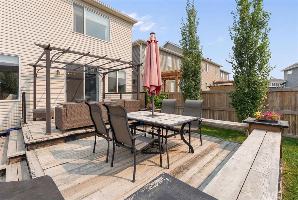 AMAZING BACKYARD! Welcome to 1 Osborne Common SW in Airdrie — a home that truly delivers on lifestyle. Offering over 3,500 sq ft of beautifully finished living space, this property is designed for both upscale entertaining and comfortable family living. From its thoughtful layout to its impressive upgrades, every detail has been carefully curated to create a space you’ll love coming home to. Step outside to your own private backyard oasis. The expansive southwest-facing yard is a standout feature, complete with two pergolas, a water feature, hot tub, and professionally designed landscaping — perfect for soaking up the sun, relaxing evenings, or hosting gatherings with family and friends. Located close to parks, schools, and shopping, this home combines luxury with everyday convenience. Inside, you’ll find 5 bedrooms, 3.5 bathrooms, a double attached garage, central air conditioning, and a fully developed basement. The main floor offers a bright, open-concept design ideal for modern living, along with a dedicated den/office — perfect for working from home. The upgraded kitchen features granite countertops, ample cabinetry, and a walk-in pantry, flowing seamlessly into the dining and living areas, highlighted by ceramic tile and vinyl plank flooring throughout. Upstairs, a central bonus room provides additional living space and privacy between bedrooms. The spacious primary suite is a true retreat, complete with a walk-in closet and a luxurious 5-piece ensuite with dual vanities. Three additional bedrooms, a full bathroom, and a convenient upper-level laundry room complete this level. The fully finished basement adds even more versatility, featuring an additional bedroom, full bathroom, and plenty of storage — perfect for guests, extended family, or a home gym. This exceptional property offers the perfect balance of space, style, and location — a true must-see.