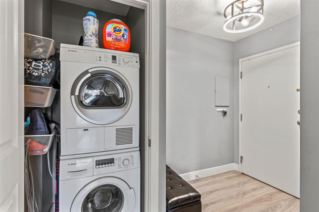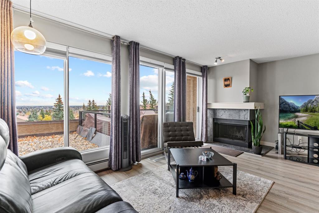 Welcome to “The News” – one of Calgary’s most sought-after complexes, nestled in the desirable community of Patterson. This BEAUTIFULLY UPDATED multi-level condo offers the perfect blend of COMFORT, FUNCTIONALITY, AND STYLE, – complete with stunning PANORAMIC CITY VIEWS. Inside, you’ll find 2 SPACIOUS BEDROOMS and 2 FULL BATHROOMS, thoughtfully designed across an OPEN-CONCEPT floor plan that’s bright and inviting. The MODERN KITCHEN features rich dark wood cabinetry, GRANITE countertops, STAINLESS STEEL appliances, and stylish pendant lighting — ideal for both everyday living and entertaining. The breakfast bar opens seamlessly into the generous living and dining areas, enhanced by LARGE WINDOWS that fill the home with natural light. Unwind in the cozy living room beside the wood-burning FIREPLACE, or step onto your PRIVATE BALCONY to enjoy skyline and treetop views. Both bedrooms are generously sized with ample closet space and offer access to a SERENE LOWER PATIO surrounded by greenery — a perfect outdoor retreat. Additional highlights include UPDATED FLOORING throughout, a FULLY RENOVATED bathroom with modern finishes, IN-SUITE laundry, and ASSIGNED HEATED UNDERGROUND PARKING, plus extra assigned STORAGE. Residents of The News enjoy exceptional ON-SITE AMENITIES including a fitness centre, indoor pool, hot tub, tennis court, and recreation room. Surrounded by mature trees and walking paths, this quiet and well-maintained complex offers quick access to downtown, the river, transit, parks, and shopping. Experience an unmatched lifestyle in one of Calgary’s most desirable locations – book your private showing today!