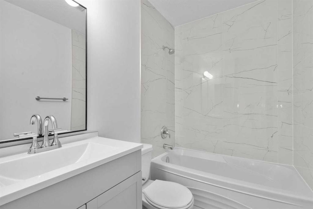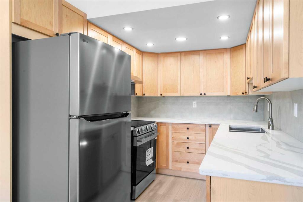 Beautifully Renovated, Move – In Ready Townhome in a prime NW Calgary Location! This bright, modern 2-bedroom townhome has been fully updated throughout and offers exceptional value for first-time buyers or anyone ready to upgrade from apartment living. Set in a quiet, well-managed complex with low condo fees, this home features a private fenced yard, stylish interior renovations, and an unbeatable central NW Calgary location. You will love the fresh, contemporary updates: new flooring on the main level, knock-down ceilings, upgraded lighting, trim, paint, newer windows and doors, and a fully renovated 4-piece bathroom. The beautifully redesigned kitchen showcases shaker style maple cabinets, modern backsplash, Caesarstone counters, and new appliances, with a sunny dining nook overlooking the fenced yard – perfect for pets, gardening, or outdoor entertaining. The spacious, sunlit living room offers plenty of space for relaxation and gatherings. Convenient main-floor laundry includes a newer full-sized washer and dryer. A high-efficiency furnace and newer hot water tank help keep utility costs low and provide peace of mind. Upstairs, the generous primary bedroom comfortably fits a king bed and features his-and-hers closets plus a private balcony, ideal for morning coffee or evening fresh air. The second bedroom is large, with a double closet and built-in desk, perfect as a child’s room, home office, or guest suite. Plenty of storage throughout adds everyday practicality. Step outside to your sunny, private, fully fenced yard, beautifully landscaped with poured walkways and a patio, an excellent outdoor extension of your living space. Parking is effortless with an assigned stall just steps away and ample visitor parking throughout the complex. Pets are allowed with Board approval. The location is truly outstanding: St. Henry Elementary is right across the street, Dr. J.K. Mulloy School is just up the block, and Sir John A. MacDonald School is within walking distance. Minutes to Superstore, Deerfoot City, Nose Hill Park, the library, recreation centre, playgrounds, and major transit routes. Commuting is easy with quick access to Deerfoot Trail, Centre Street, 14th Street, and several nearby bus routes. This home blends modern style, affordability, and everyday convenience in a mature, family-friendly community. With immediate possession available, all that’s left to do is move in and enjoy. A must-see property, beautifully updated, affordable, and perfectly located in the heart of Huntington Hills!