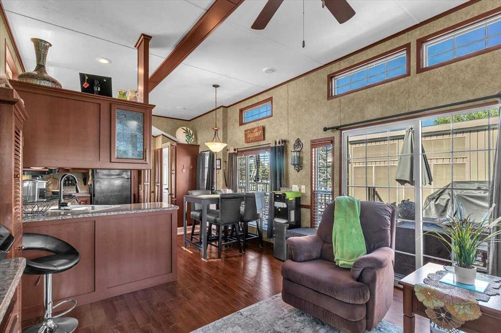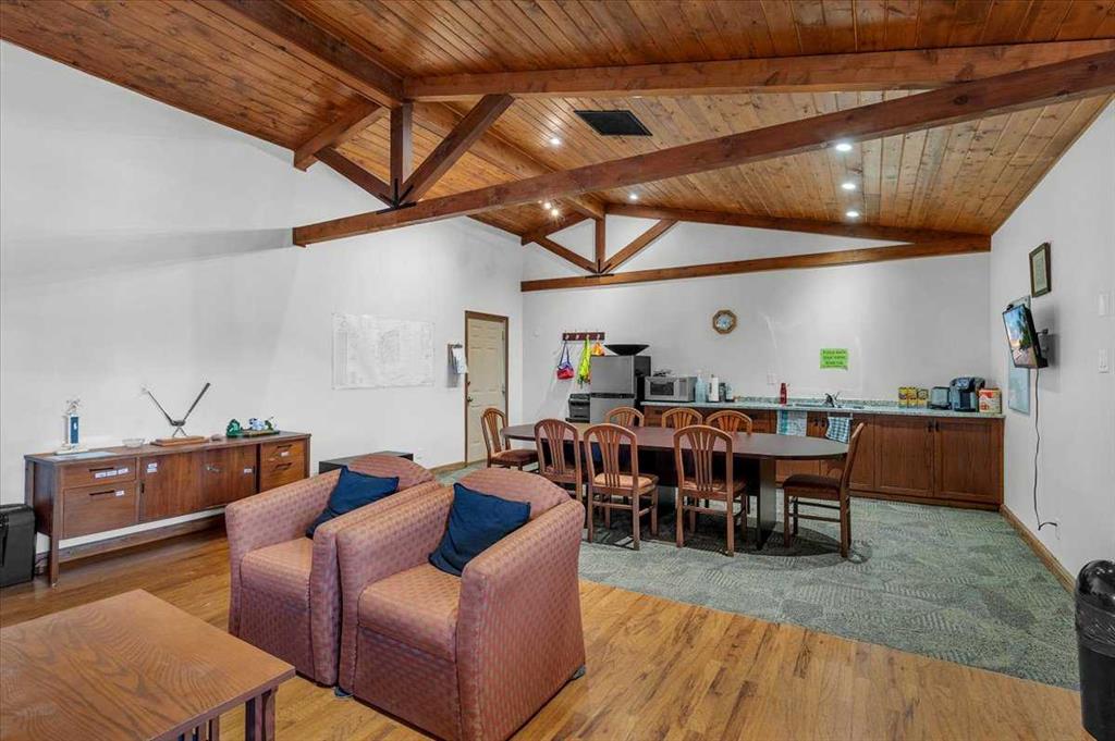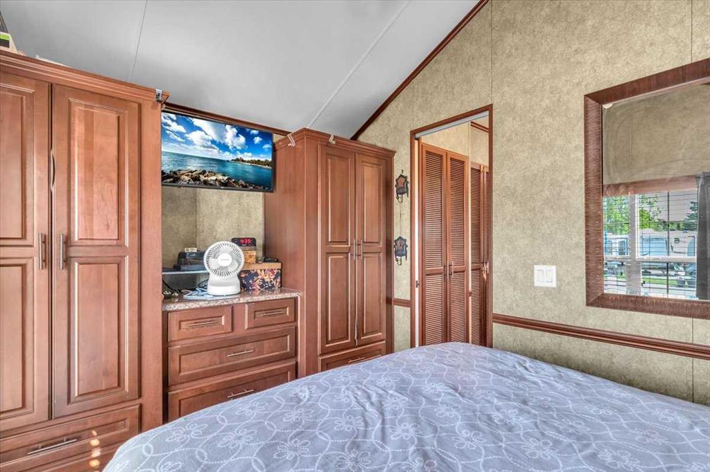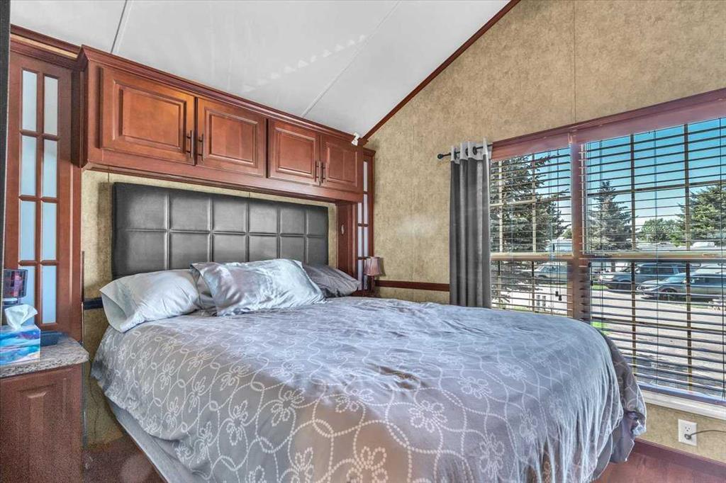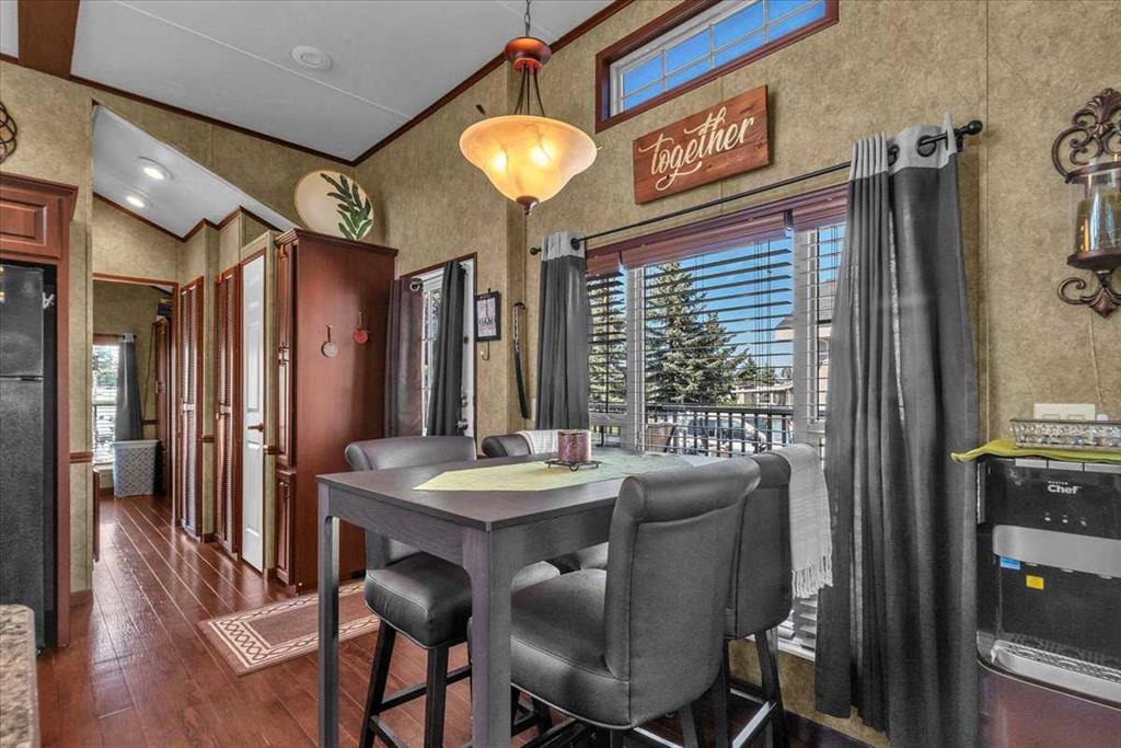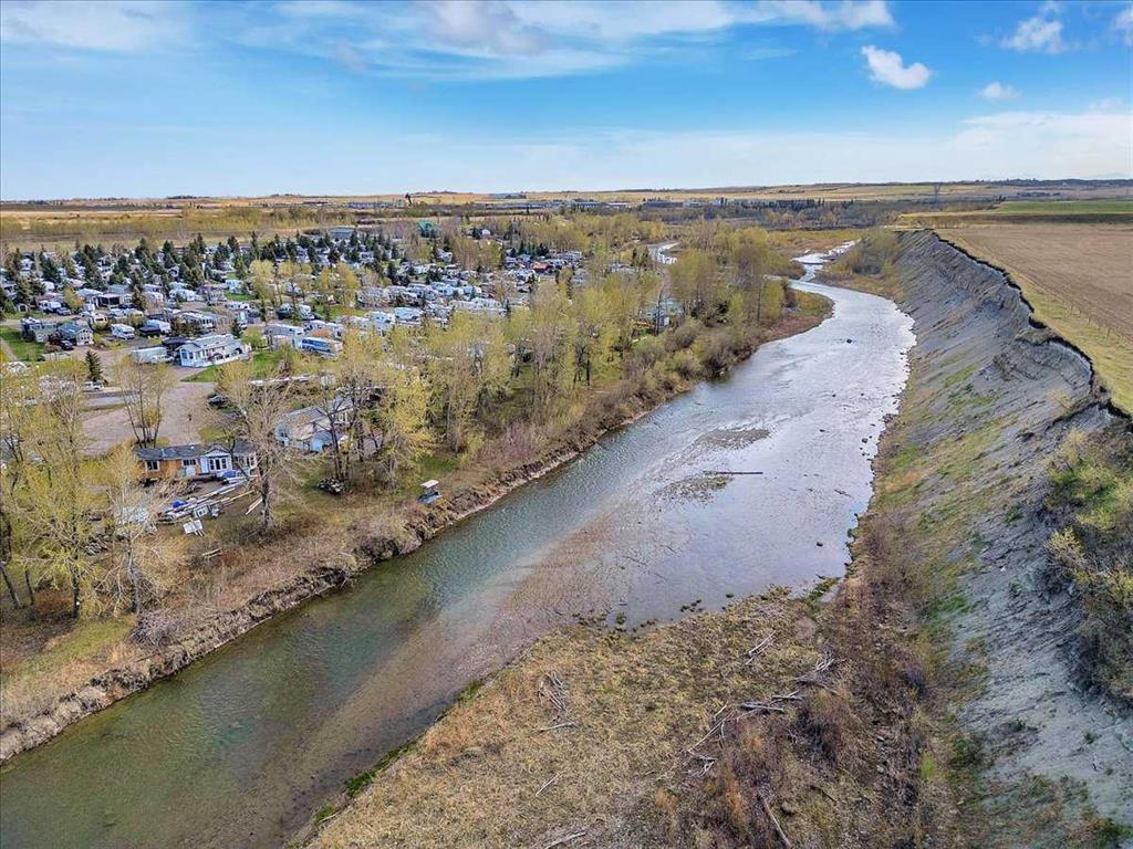Built in 2013, this newer park model was custom designed-making it a bright and spacious home with lots of space, comes with A/C and best of all-it backs onto manicured green space, making it a quieter and more private backyard. The custom designed kitchen includes full appliances, the bright living room overlooks the private greenspace and the dining room overlooks the private deck. The master bedroom and bath 9with skylight) are a comfortable size and offer lots of storage space. The extended deck features a privacy fence and all the extras go into the storage shed in the back. This package comes with a clubhouse featuring a fitness gym, an outdoor pool and hot tub, laundry facility, a lounge area with pool table, games and books and an auditorium with a stocked kitchenette for larger events for you and your family and friends. You can enjoy the peaceful lifestyle of your home or go for a leisurely walk around the RV Park, or take a stroll along the river or cool off in the out door pool. This complex is within a 10 minute drive to Okotoks or 20 minute drive to the city making it a great summer and fall retreat! This RV Park is open from April 1st to Oct. 31. Each unit has it’s own electrical outlet making the condo fees $185. per month.