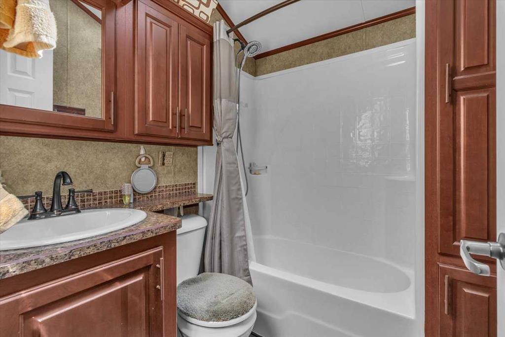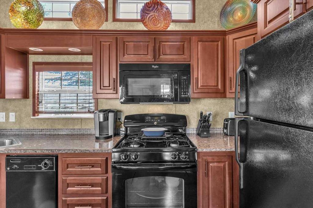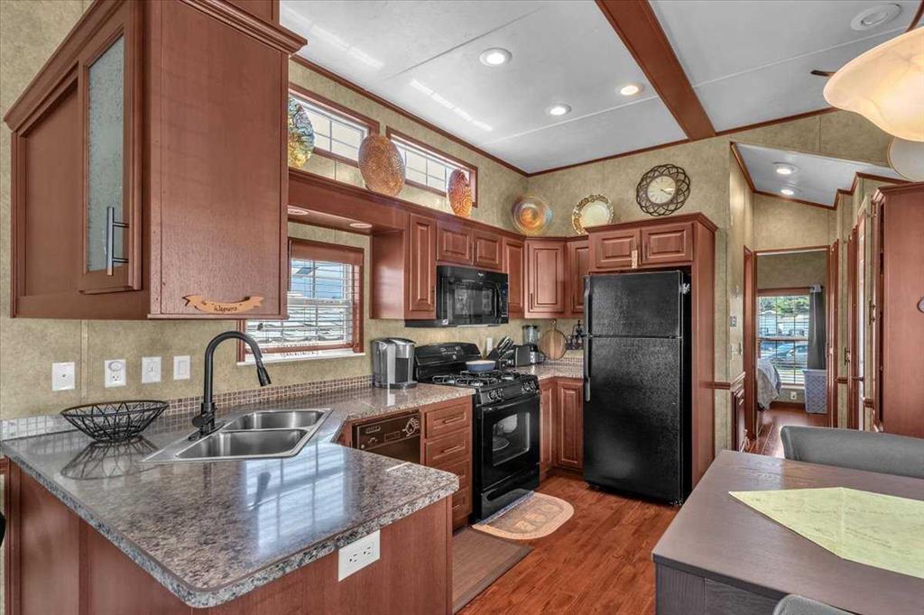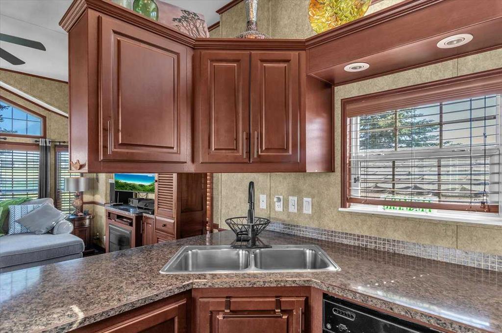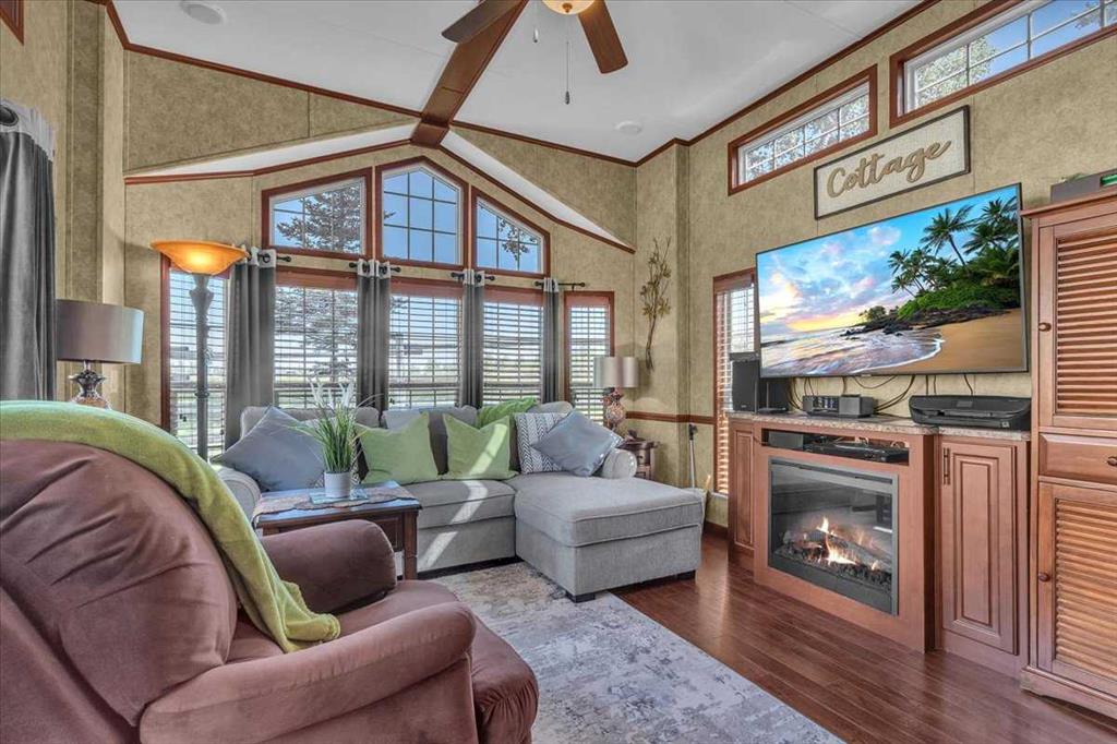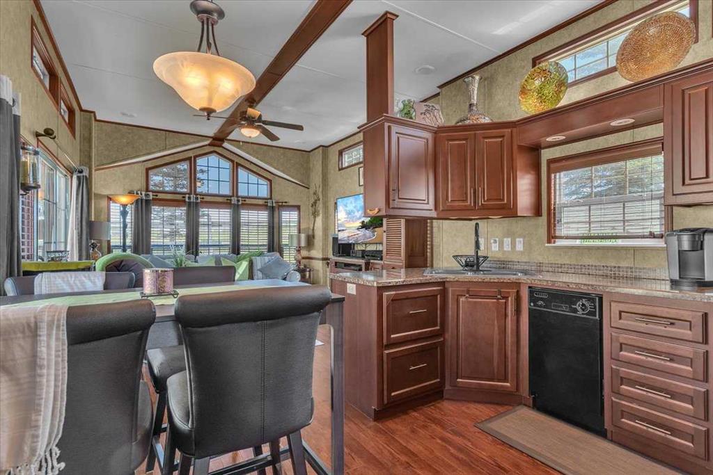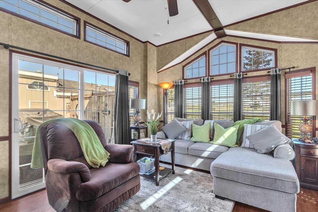 Built in 2013, this newer park model was custom designed-making it a bright and spacious home with lots of space, comes with A/C and best of all-it backs onto manicured green space, making it a quieter and more private backyard. The custom designed kitchen includes full appliances, the bright living room overlooks the private greenspace and the dining room overlooks the private deck. The master bedroom and bath 9with skylight) are a comfortable size and offer lots of storage space. The extended deck features a privacy fence and all the extras go into the storage shed in the back. This package comes with a clubhouse featuring a fitness gym, an outdoor pool and hot tub, laundry facility, a lounge area with pool table, games and books and an auditorium with a stocked kitchenette for larger events for you and your family and friends. You can enjoy the peaceful lifestyle of your home or go for a leisurely walk around the RV Park, or take a stroll along the river or cool off in the out door pool. This complex is within a 10 minute drive to Okotoks or 20 minute drive to the city making it a great summer and fall retreat! This RV Park is open from April 1st to Oct. 31. Each unit has it’s own electrical outlet making the condo fees $185. per month.