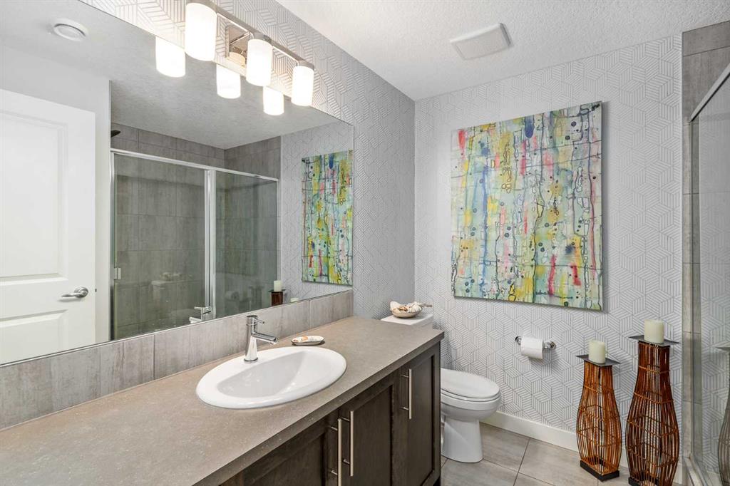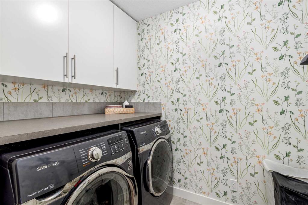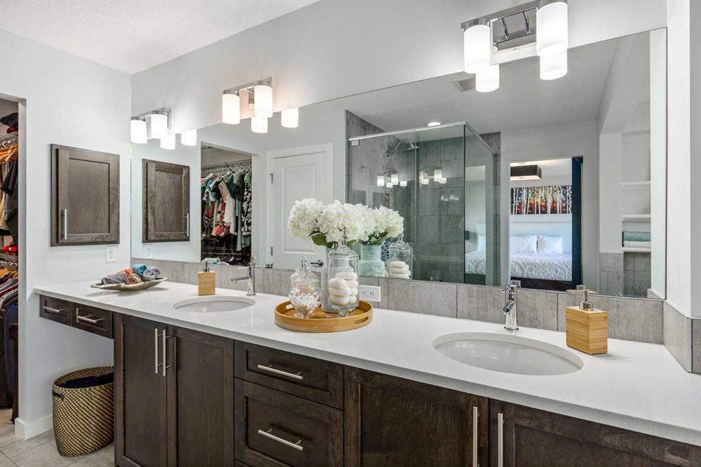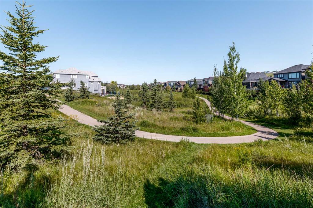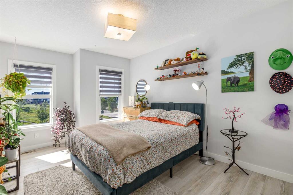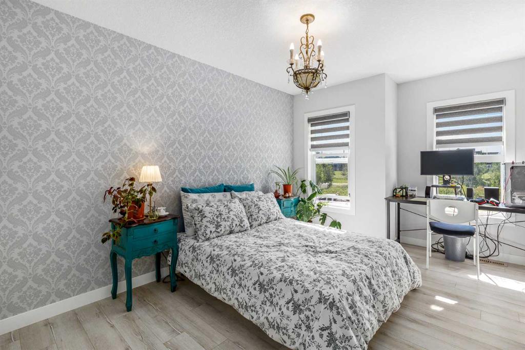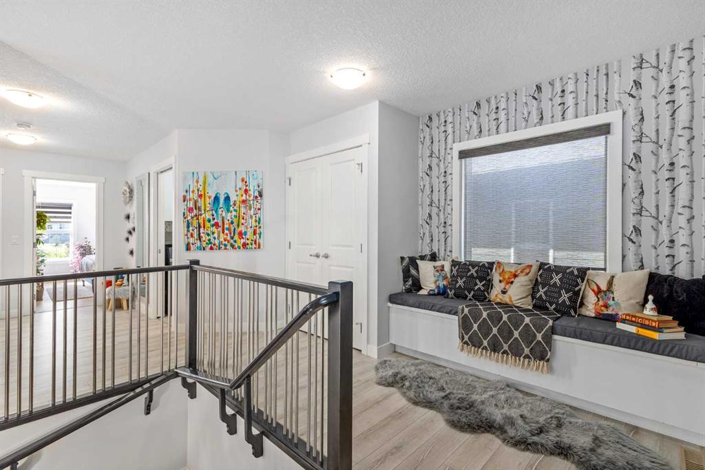 From the moment you step inside, this stunning home feels like something out of a Pinterest board or a high-end interior design magazine. Every detail has been thoughtfully selected & expertly executed, making it a true showstopper that shows 10 out of 10. Located in the prestigious community of Riverstone in Cranston, this 2,500 sq ft two-storey home offers an unbeatable lifestyle—BACKING DIRECTLY onto a tranquil NATURAL RESERVE & fronting onto a kid-friendly playground. It’s the ideal combination of luxury, functionality, & location. Inside, you’re greeted by 10′ ceilings, acacia hardwood floors, & a layout that flows effortlessly. The front dining room features a double tray ceiling & a striking designer light fixture, while the expansive rear living room is anchored by a gas fireplace wrapped in marble-style tile with a lower hearth. Large windows along the back wall frame serene views of the green space beyond, bringing the outdoors in. The chef’s kitchen is a showpiece—featuring full-height dark-stained cabinetry with bar pulls, white quartz counters, upgraded appliances, & a stunning herringbone tile backsplash that extends to the ceiling around the hood fan. A cabinet-style pantry wraps into a coffee bar nook for added function & flair. The back mudroom connects seamlessly to the oversized garage & includes locker-style built-ins. A beautifully wallpapered 2-piece powder room adds a touch of charm. Upstairs, the large bonus room is wrapped in modern railing & showcases a birch forest wallpaper feature wall, built-in ceiling speakers, & laminate floors that continue throughout the upper level (carpet only on the stairs). A convenient built-in desk area outside the kids’ bedrooms creates a perfect zone for homework or study sessions, while a built-in bench at the top of the stairs offers a cozy reading nook. All three bedrooms include custom California Closet-style built-ins for thoughtful storage. The primary suite overlooks the peaceful reserve & features a spa-like ensuite with a large soaker tub framed by a picture window, a massive glass shower, dual sinks with a dedicated vanity space, & a barn-style door leading to the generous walk-in closet. The professionally finished basement, completed by the builder, extends the living space with durable laminate floors, a spacious rec room, a bright fourth bedroom with a wallpaper feature wall, a 4-piece bathroom, & a sleek wet bar complete with sink & mini fridge—ideal for entertaining or relaxing movie nights. Step outside to discover your private oasis. The beautifully landscaped backyard is designed for both comfort & calm, with mature trees providing privacy & a two-tiered deck perfect for hosting or unwinding. A cozy hot tub area invites you to relax year-round, while thoughtful details like under-deck storage and low-maintenance landscaping enhance the functionality. With no neighbours behind and the natural reserve just beyond your fence line, this backyard is a serene retreat immersed in nature.