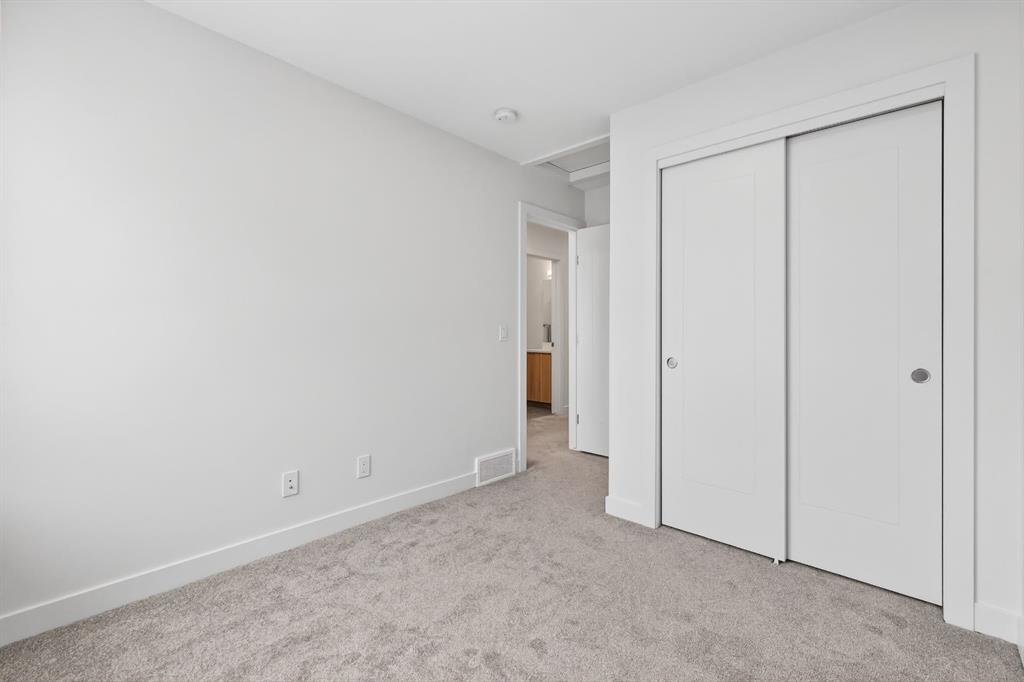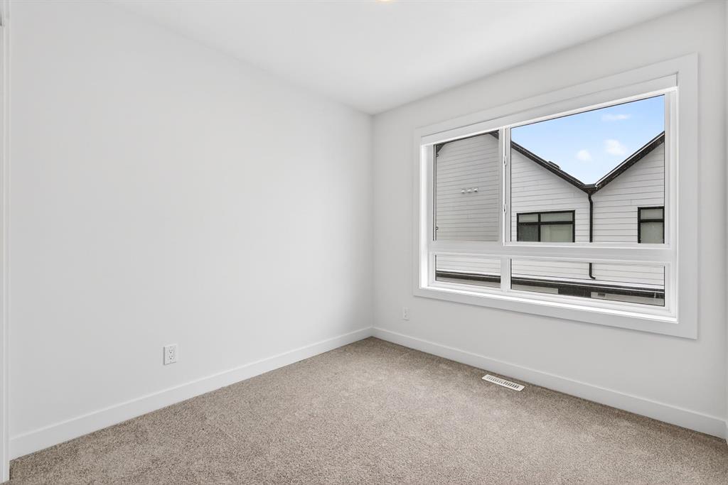 Welcome to life in Currie Barracks, one of Calgary’s most coveted master-planned communities. Perfectly positioned along beautiful Currie Walk, this interior triplex unit enjoys a quiet setting away from construction while offering charming pathway views and a true neighbourhood feel. Step inside to a spacious main floor foyer featuring a versatile bedroom ideal for a home office, guest space, or flex room, along with convenient access to the double attached garage. Upstairs, the bright and open living level is designed for both comfort and entertaining. The stylish kitchen showcases a large quartz island, stainless steel appliances, and excellent storage, flowing seamlessly into the well-appointed dining area with balcony access for easy summer BBQs. The cozy living room provides the perfect place to unwind at the end of the day. The upper level features a thoughtfully designed layout with a spacious primary retreat complete with a walk-in closet featuring California Closet built-ins and a private 4-piece ensuite. Two additional bedrooms and another full 4-piece bathroom complete the top floor. Central air conditioning ensures year-round comfort. Currie Barracks is renowned for its outstanding schools, scenic walking paths, beautiful parks, and growing collection of restaurants, cafés, and breweries, all just a quick 10-minute drive to downtown Calgary. Ideal for young professionals, this vibrant inner-city community offers an unbeatable lifestyle in a truly exceptional location.
