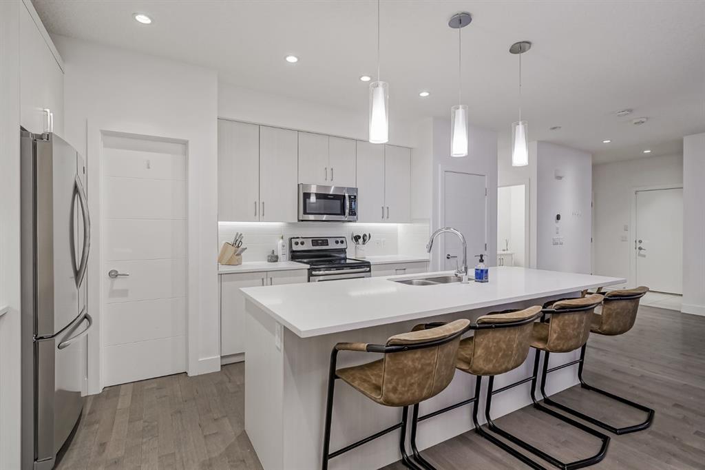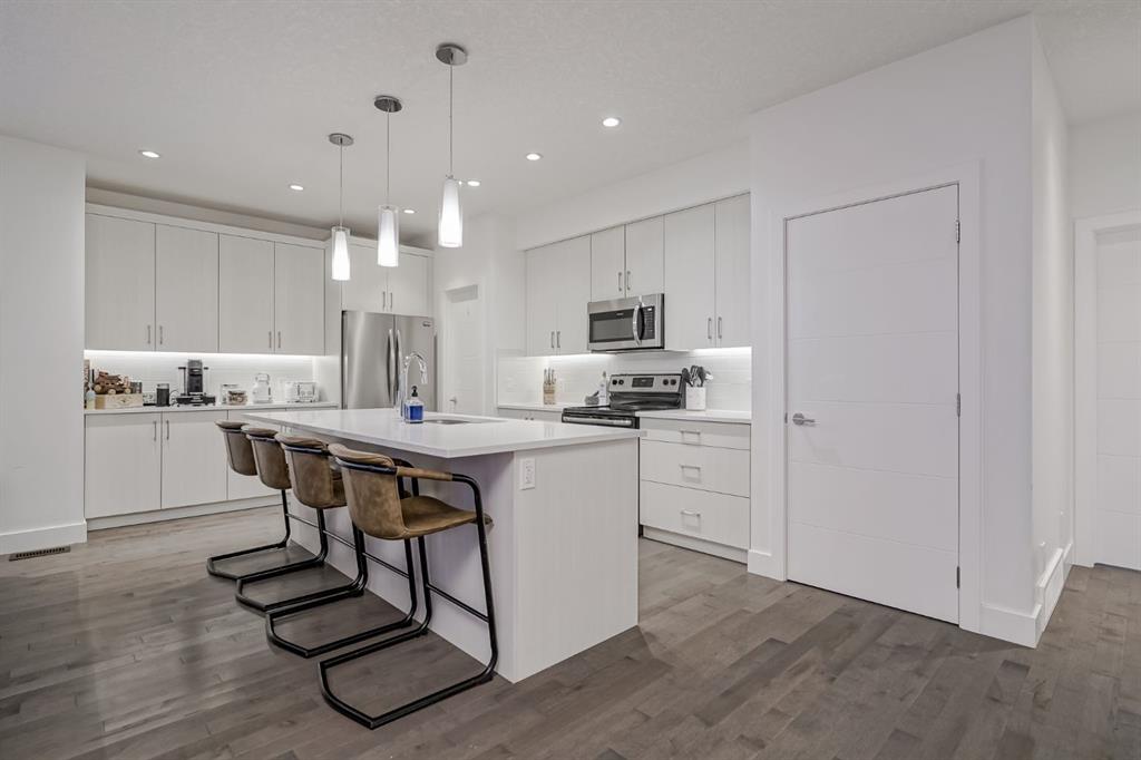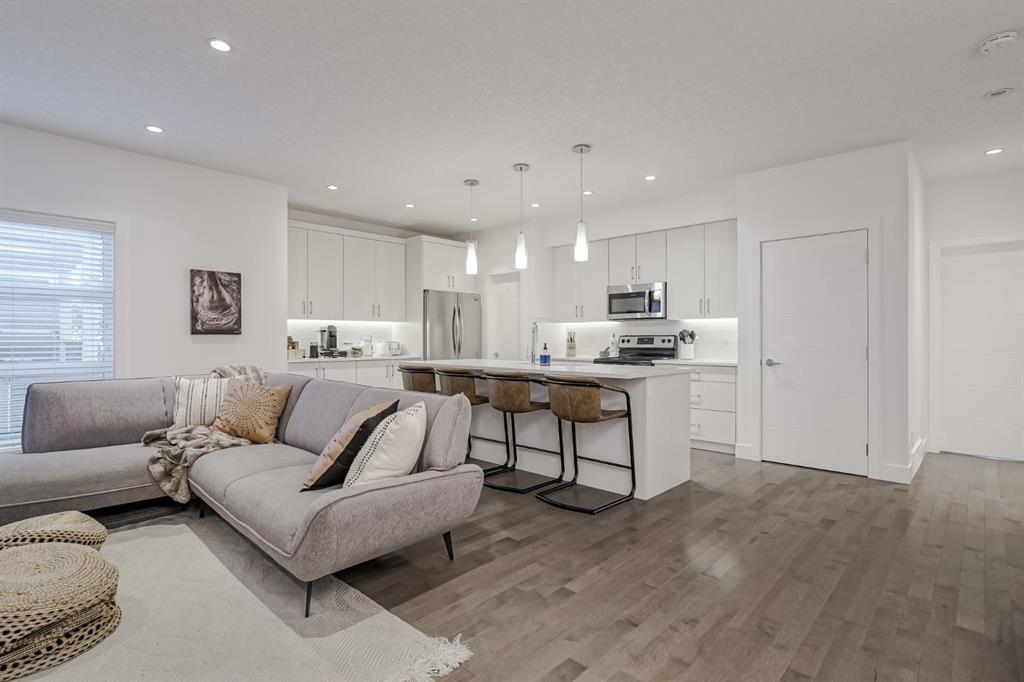 Welcome to this stunning semi-detached up/down bungalow in the heart of Altadore, perfectly positioned just steps from the shops and cafés of Marda Loop and 10 minutes to downtown. With over 2,300 sq ft of thoughtfully designed living space, this home combines modern style with the ease of low-maintenance living. The main level features an inviting open-concept design with 9-ft ceilings, hardwood floors, and a chef’s kitchen finished with quartz countertops, stainless-steel appliances, full-height cabinetry, and a spacious island for entertaining. The living area is warm and welcoming with a gas fireplace and access to a private front patio for your morning coffee or evening unwind. The primary suite impresses with a spa-inspired 5-piece ensuite and a massive walk-in closet with custom storage. The fully developed lower level offers a bright family room with wet bar, two additional bedrooms, a 4-piece bath, and excellent storage, ideal for guests or a home office setup. Enjoy the convenience of a self-managed exterior-maintenance program covering snow removal and exterior upkeep, perfect for those seeking a lock-and-leave lifestyle. A newer carport and private entrance complete this exceptional home. Experience the best of Altadore living with all the amenities and energy of Marda Loop just outside your door, from cafés and boutiques to vibrant community events throughout the year.