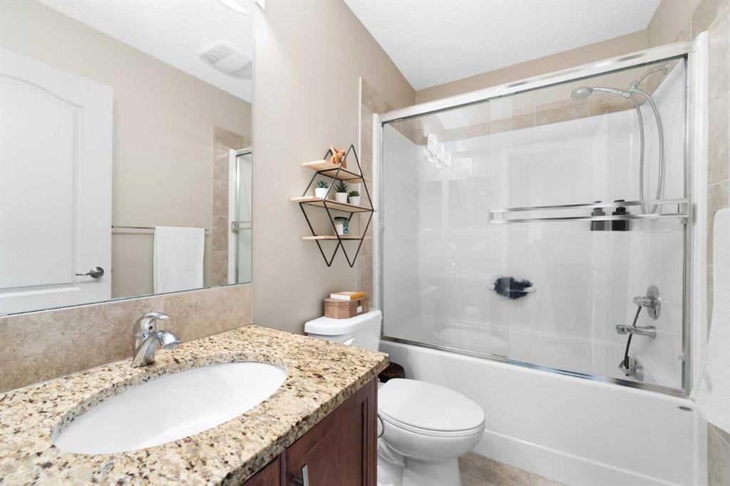 Welcome to a home that delivers space, style, and versatility across all three beautifully finished levels. Offering five bedrooms plus a loft and a fully developed basement, this Built Green certified property is designed to meet the needs of growing families and those who love to entertain. Step inside to a welcoming front foyer with a generous closet and a functional flow that immediately feels like home. The living room is anchored by a tile-faced fireplace, creating a warm and inviting focal point, while the central dining area comfortably accommodates a full-size table for everyday living or hosting. At the back, the kitchen is both spacious and practical, featuring granite countertops, ample cabinetry, a pantry, and upgraded appliances including a gas range, built-in hood fan, dishwasher, and refrigerator (2024). It overlooks the thoughtfully designed backyard, making it perfect for keeping an eye on kids or guests. A 2-piece bath and a mudroom with built-in storage complete the main level. Upstairs, the layout is ideal for privacy and function. The primary suite is set apart with a large walk-in closet and a well-appointed 4-piece ensuite, while two additional bedrooms are positioned on the opposite end. A central 4-piece bath and convenient upper laundry round out this level. The fully developed third floor expands your options with a fourth bedroom, another full bath, and a versatile loft—perfect for a home office, media space, or retreat. The fully finished basement adds an additional 511 sq ft of living space, complete with a fifth bedroom, full bathroom, a large recreation area, and ample storage. Altogether, including the 3rd story loft level, this home offers exceptional usable space rarely found in similar properties. Outside, both the front and back yards have been professionally landscaped with low-maintenance design in mind. Enjoy perennial gardens, decorative grasses, paver stone features, and artificial turf in the backyard. The deck has been expanded to 10×18, offering a great outdoor living space for summer evenings. Additional highlights include granite throughout all bathrooms, sliding glass shower enclosures, a pedestal sink in the powder room, and a 20×20 garage with space-saver trusses for extra storage. Major updates provide peace of mind, including a new roof (2025), new siding (2025), and a new garage door (2026). This is a rare opportunity to own a meticulously maintained, thoughtfully upgraded home with room to grow in every direction.