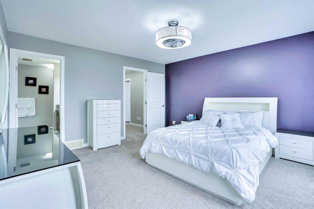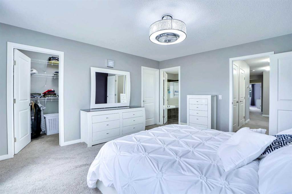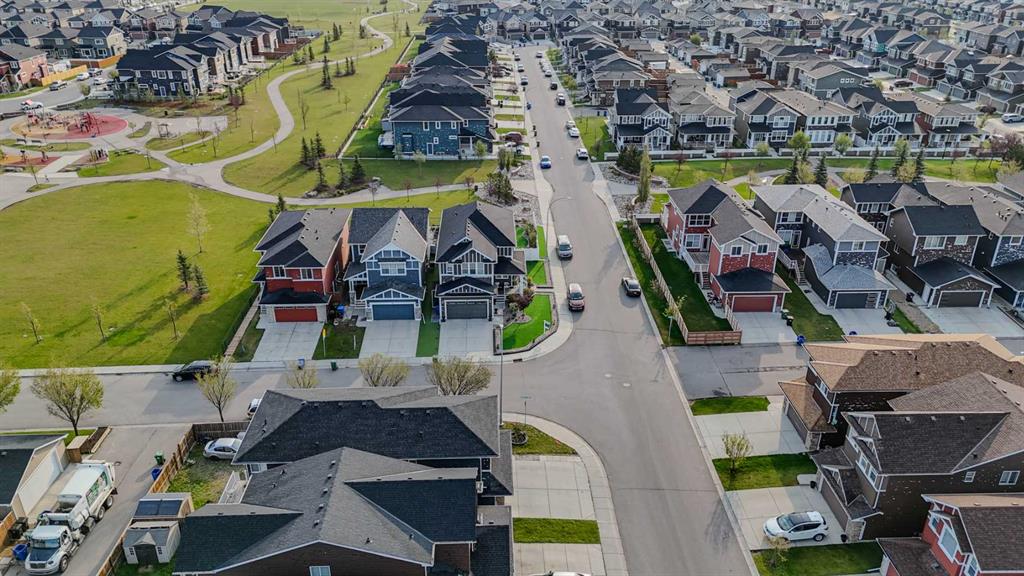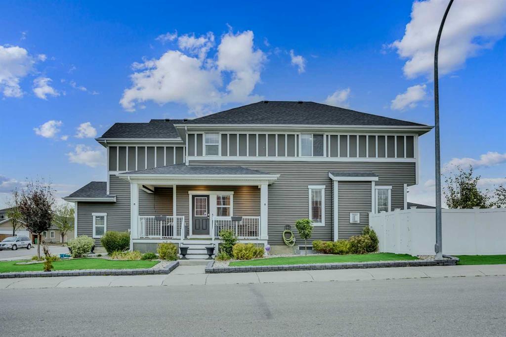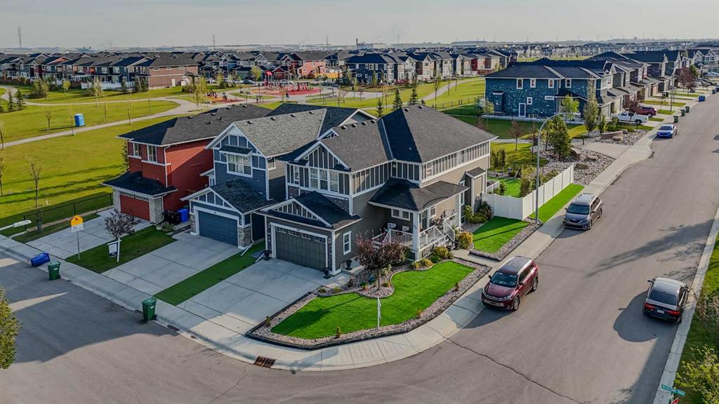 Welcome to this exceptional, executive two-storey home by Jayman, ideally situated on a desirable corner lot backing onto green space in Redstone. Meticulously maintained, this impressive residence offers over 3,400 sq. ft. of developed living space, featuring 5 bedrooms, 3.5 bathrooms, and 25 windows dressed with Hunter Douglas coverings, providing abundant natural light throughout. Recent upgrades include new shingles, eavestroughs, and garage door paint within the past year. The open-concept main floor showcases 9’ ceilings, ceramic tile, and designer laminate flooring with cork underlay. The inviting living room is anchored by a tile-surround gas fireplace and includes a mounted TV. The well-appointed kitchen is a chef’s dream, complete with quartz countertops, stainless steel appliances including built-in oven, microwave, and cooktop, a mosaic tile backsplash, ample cabinetry, a central island with breakfast bar and pendant lighting, and a convenient walk-through pantry with dual pocket doors. The dining area opens to a beautifully landscaped backyard backing onto green space, featuring a large deck, patio with gazebo and fire feature, LED garden lighting (front and back), water features, and ample space for outdoor enjoyment. All exterior furniture and plants are included. The main level is completed by a 2-piece bathroom and a functional mudroom. Upstairs, the spacious primary suite offers dual walk-in closets, an updated light fixture with built-in ceiling fan, and a luxurious 5-piece ensuite with double vanities, soaker tub, separate shower, and tile flooring. The upper level also includes three additional generously sized bedrooms, a 4-piece bathroom, a large bonus room, and a convenient laundry room with cabinetry, countertop, and a bright south-facing window. The fully finished basement (with permits) extends the living space with a fifth bedroom, family room, home office area, and a stylish 3-piece bathroom featuring a marble vanity, tiled shower with tempered glass, and quality finishes throughout. Additional features include keyless entry (front and back), Nest smart thermostat, central alarm system with dual displays, doorbell camera, carbon monoxide detection, basement water sensor, and a central vacuum system servicing all three levels. The double attached garage is insulated and drywalled. Ideally located close to schools, parks, public transit, shopping, and all amenities, this outstanding property offers the perfect blend of comfort, style, and functionality.