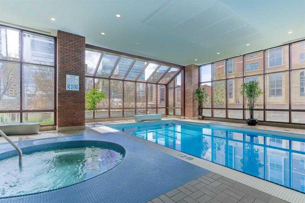 Experience refined urban living at EAU CLAIRE ESTATES, one of Calgary’s most prestigious luxury addresses. This exclusive, impeccably maintained building offers an ELEVATED LIFESTYLE with 24-hour concierge service, on-site management, a beautifully RENOVATED LOBBY, and lush, landscaped courtyards. Residents enjoy premium amenities including a private outdoor PUTTING GREEN, fully equipped FITNESS CENTRE, INDOOR SWIMMING pool, hot tub with change rooms, secure bike storage, and the rare convenience of an underground CAR WASH bay. With only two residences per floor, privacy and tranquility are paramount.