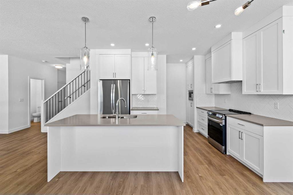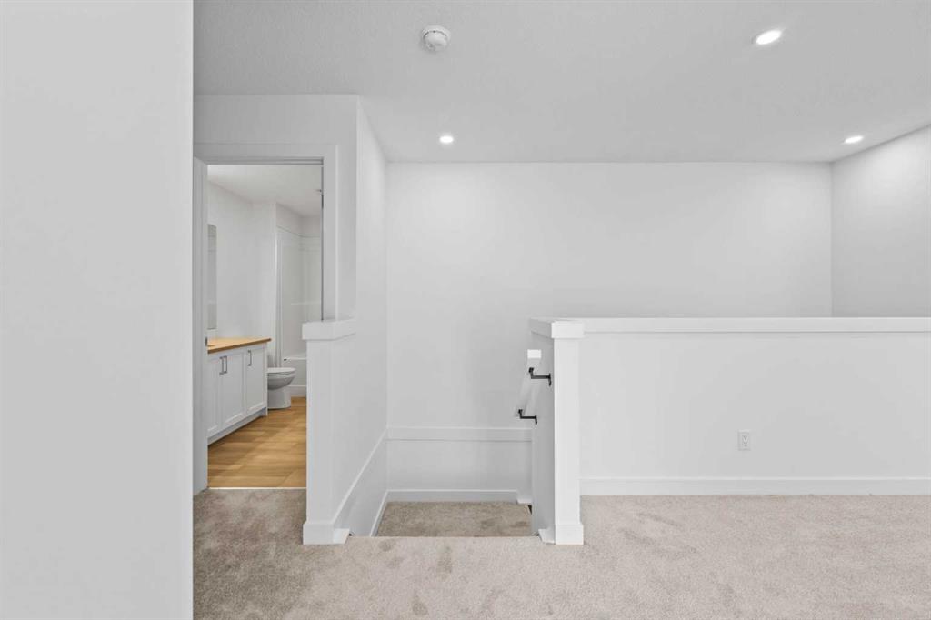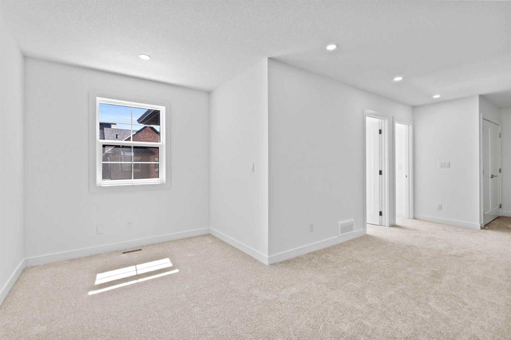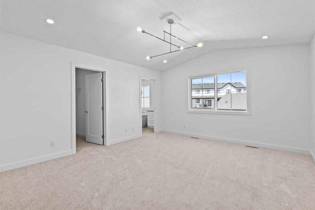 Welcome to luxury and convenience built by Vesta Properties – in the heart of Airdrie’s award-winning community of Cooper’s Crossing. This brand-new beautifully crafted interior-unit townhome combines everyday comfort with smart design. Step inside to discover a bright, functional main level that includes a stylish gourmet kitchen with an oversized island and stainless steel appliances, a cozy family room. Upstairs, a sun-soaked bonus room offers the perfect space to unwind, work from home, or enjoy family time. Just off the bonus area, you’ll find two additional bedrooms, a full bathroom, and a convenient upstairs laundry space ( No washer and dryer in unit). Also you will find your primary bedroom, which is a retreat complete with vaulted ceilings and a spa-inspired ensuite. Enjoy the added luxury of 9-foot ceilings on both the main floor and the basement, creating a spacious and airy atmosphere throughout.