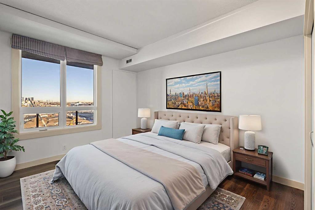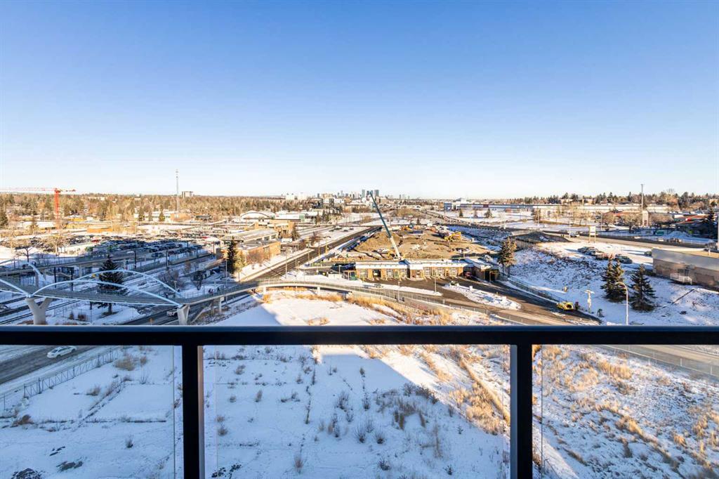 Designed for effortless daily living, this north-facing 10th-floor condo combines skyline views with immediate access to transit and on-site amenities. Featuring 9-foot ceilings, an open-concept layout, freshly painted interiors, and expansive windows, this home feels bright, modern, and move-in ready. The kitchen is designed for both everyday living and entertaining with maple cabinetry, sleek upper storage, black appliances, a brand-new refrigerator (2025), modern fixtures, and a generous breakfast bar anchoring the living space. The bright living room flows seamlessly to a cozy balcony where you can enjoy breathtaking downtown and mountain vistas while grilling on the natural gas hookup, perfect for summer barbecues and year-round enjoyment. The primary bedroom offers comfortable accommodation while the versatile den provides the perfect space for a home office or guest room, plus the convenience of in-suite laundry with a new stacked washer and dryer (2024) simplifies everyday chores. This pet-friendly, professionally managed building offers 24-hour security, heated underground parking, three high-speed elevators, a party room, a modern lobby with updated furniture, a sunroom on the 17th floor, and a serene rooftop garden where panoramic downtown views create the perfect backdrop for relaxation. One of the building’s standout features is direct heated underground access to Save-On-Foods and the Shops at Heritage, along with a pedestrian bridge providing a short walk to the Heritage LRT Station for quick downtown access. For outdoor enthusiasts, nearby bike trails, Glenmore Reservoir, Fish Creek Park, and numerous green spaces offer endless recreation options. Whether you’re a first-time buyer, investor, or young professional seeking low-maintenance urban living, this exceptional home delivers comfort, convenience, and style in one of Calgary’s most connected neighborhoods. Don’t miss this opportunity to make this your new home!