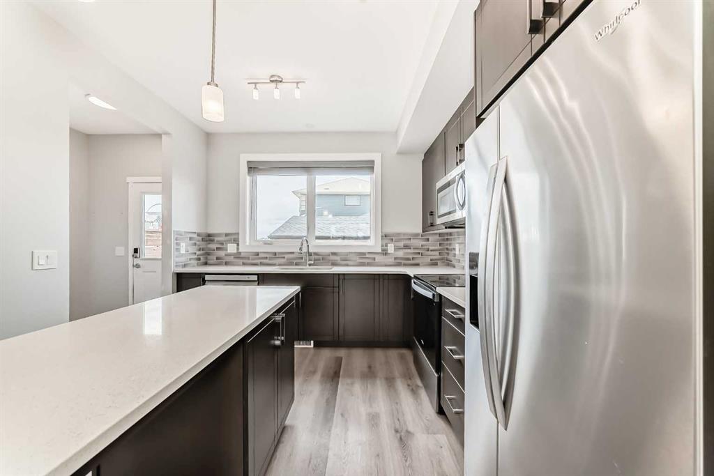 **OPEN HOUSE SAT NOV.8/25 FROM 12-2 PM** Looking for a low maintenance lifestyle, w/no condo fees in one of Calgary’s hottest lake communities? Look no further! This exceptional fully landscaped 2 bed/2.5 bath semi detached home w/double detached garage is the one to see! Walking up to the home you’ll appreciate the covered front porch & Hardie plank siding. Upon entering, you’ll love the 9′ ceilings, open concept living space, fresh paint, luxury vinyl plank flooring throughout & the large windows flooding the area with natural light. The living & dining areas offer plenty of entertaining room for hosting friends & family. The good sized kitchen features a large eat up island, quartz countertops and lots of storage for the chef in your home. The powder room & mudroom complete the main floor. Outside you’ll love the relaxing backyard with a large composite deck for dinners al fresco & grassy area w/fire pit for roasting smores. The upper level features two generous primary bedrooms w/good sized closets and ensuite baths featuring vanities w/quartz countertops. Laundry is a breeze situated on the upper level. The unfinished basement is partially framed and just waiting for your imagination. The award winning community of Mahogany has it all! The community is centered around a 63-acre freshwater lake with two private beaches, a splash park, and tennis courts at the Mahogany Beach Club. Mahogany has extensive green space, including 74 acres of wetlands, 30 neighborhood parks, and 22 kms of pathways for walking and biking, making it an urban oasis. Want more?? The Urban Village & Westman Village is home to some of the best restaurants (Chairman’s Steak House, The Banquet, Alvin’s Jazz Club,The Mash, etc), various retailers, groceries & services plus the South Calgary Health Campus means you don’t have to go far. With easy access to Stoney Trail via 88 st & Deerfoot Trail make commuting a breeze. Book your showing today!