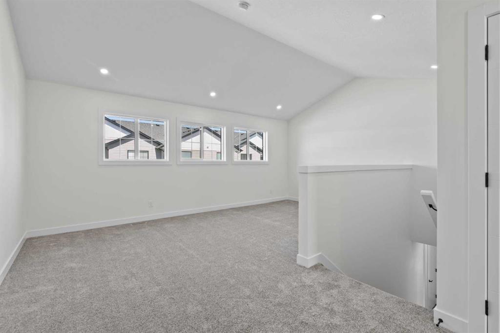 Welcome to luxury and convenience in the heart of Airdrie’s award-winning community of Cooper’s Crossing. This beautifully crafted corner-unit townhome features the highly sought-after primary bedroom on the main floor, combining everyday comfort with smart design. Step inside to discover a bright, functional main level that includes a stylish gourmet kitchen with an oversized island and stainless steel appliances, a cozy family room, and your private main-floor retreat complete with vaulted ceilings and a spa-inspired ensuite. Upstairs, a sun-soaked bonus room offers the perfect space to unwind, work from home, or enjoy family time. Just off the bonus area, you’ll find two additional bedrooms, a full bathroom, and a convenient upstairs laundry space ( no in unit washer and dryer)