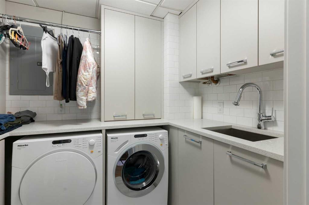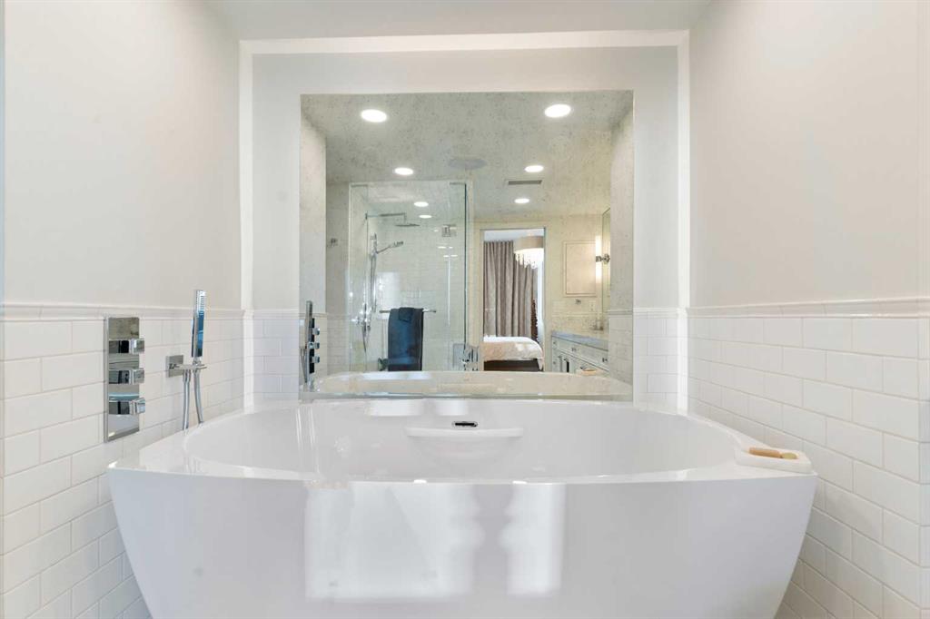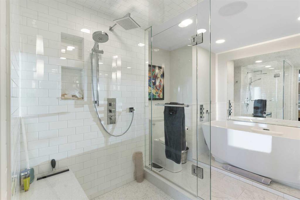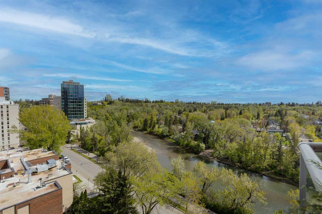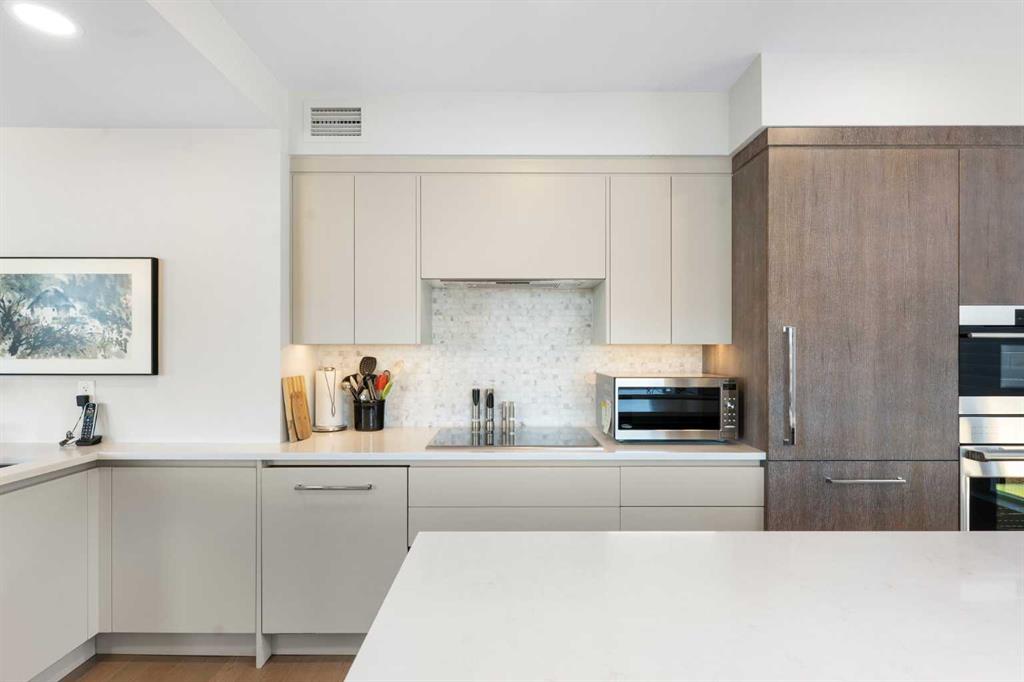 Thinking about downsizing but everything is too small? Welcome to The Grandview, where luxury living meets breathtaking views in the heart of Calgary’s Mission neighborhood. This spacious 2 bedroom, 2 bathroom, 2 underground parking stalls plus DEN unit has had a half a million dollar renovation completed by Paul Lavoie Interior Design. Every inch of the unit has been updated. The custom kitchen boasts quartz countertops and top-of-the-line appliances, including brands such as Wolf, Sub-Zero, and Miele, pantry and island creating a chef’s haven. All custom cabinets, millwork and closet organizers throughout the condo were completed by Empire Kitchen and Bath. The bright spacious living room has River Valley views from every window, a custom fireplace plus access to 2 huge decks. The dining room features custom built-in storage. The primary suite is a sanctuary of its own featuring downtown views, spacious walk-in closet and luxurious 5 pc master bathroom that includes a huge walk-in shower, double vanities and impressive stand alone tub. The 2nd bedroom is adjacent to the main bathroom. The den has a built-in desk and storage plus lots of flex space for a home gym. Enjoy beautiful engineered hardwood throughout the main living area. Other features include: Full laundry room with sink, grand foyer, in-suite storage & separate storage room plus Control 4 home automation. The Grandview boasts a range of amenities including The Lang House, a heritage home perfect for hosting, as well as another party room in the complex with a full kitchen that is great for social gatherings. The outdoor courtyard is great for BBQ’s and enjoying nature. Enjoy the best 24/7 concierge service, 2 elevators, 2 guest suites, visitor parking and car wash. The location is second to none…easy walking distance to the endless amenities on 4th street, the Glencoe Club and Safeway. Right outside your front door you have the Elbow River walking path. Don’t miss this special opportunity, carefree lock and go living.