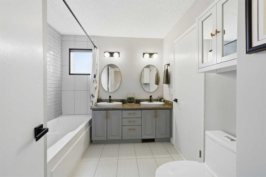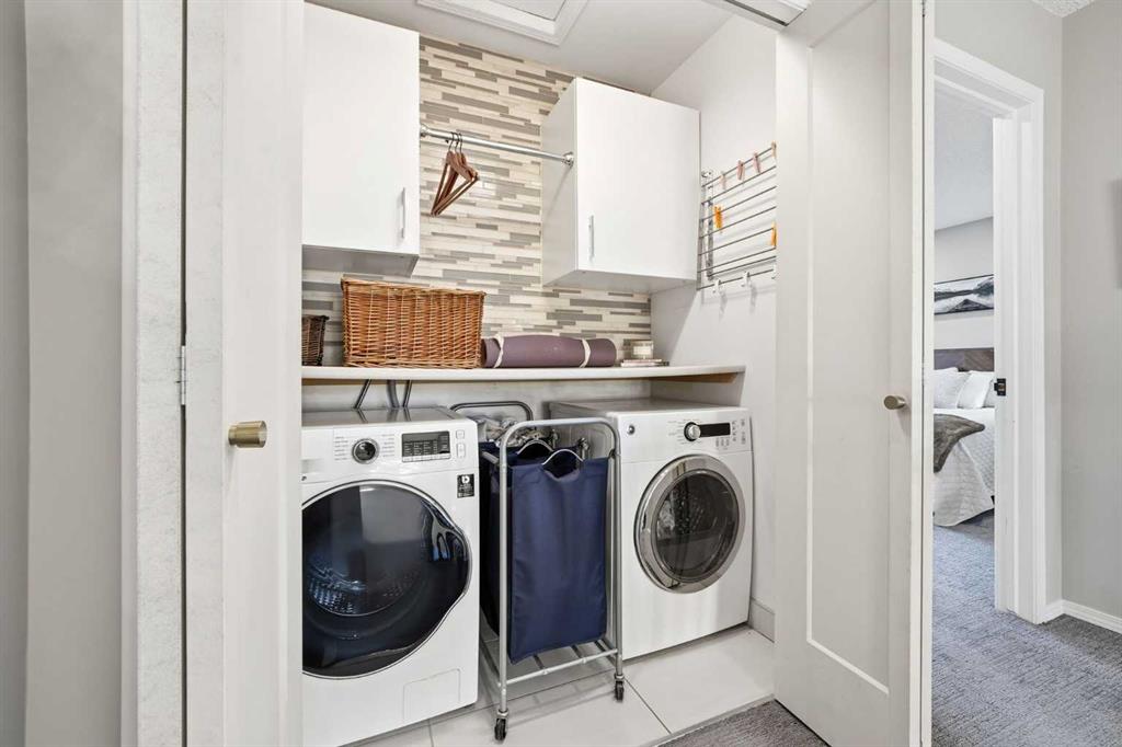 Upstairs, two generously sized bedrooms are complemented by a RECENTLY RENOVATED ENSUITE BATHROOM blending style, space, and elegance. The upstairs closet has been transformed into an impressive and highly functional LAUNDRY ROOM, right next to the two main bedrooms. HIGH-END GRABER BLINDS ARE IN PLACE THROUGHOUT the home providing enhanced comfort, privacy, and visual appeal.