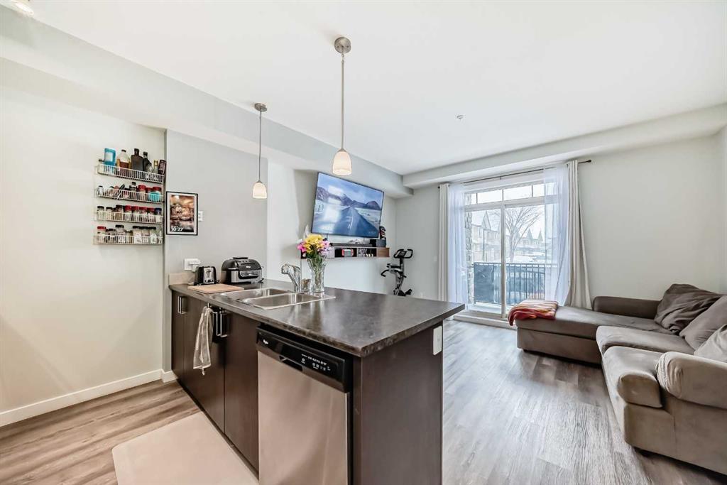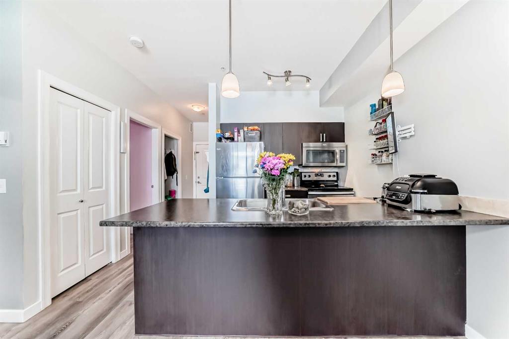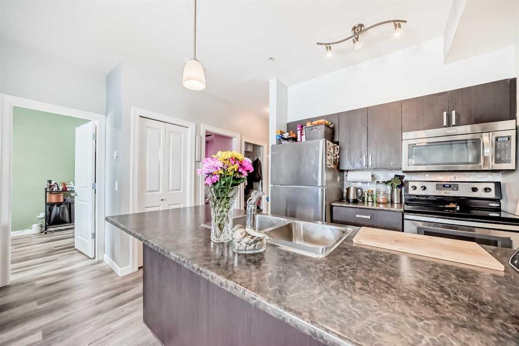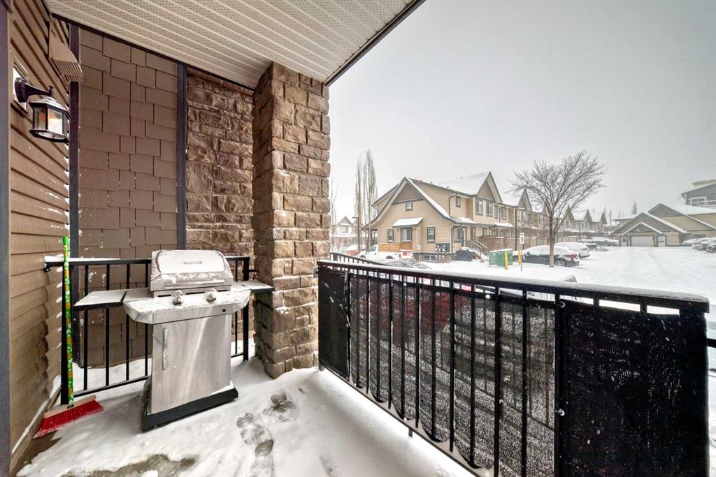 Welcome to this cozy, clean and cute conveniently located ground floor unit in Copperfield! As you enter this unit you have a den/bedroom that is perfect for a home office, bedroom for the kid or a roommate! The central kitchen is the focal point and has stainless steel appliances, a good amount of counter space at the island and opens up to the good sized living room that features sliding doors that lead out to the balcony. The main bedroom is a great size and has plenty of closet space! this unit also has a separate storage locker, a parking stall literally right outside the front door so you can keep an eye on it, there is also a full bathroom, in suite laundry, low condo fees, close proximity to all the areas amenities, transit, schools, 130th Ave, Deerfoot and Stoney Trails and so much more! Great price for a great unit in a perfect location! Come and have a look!