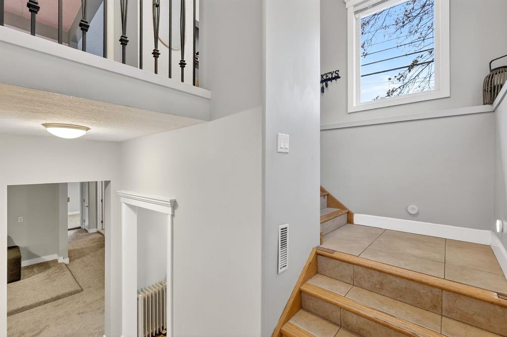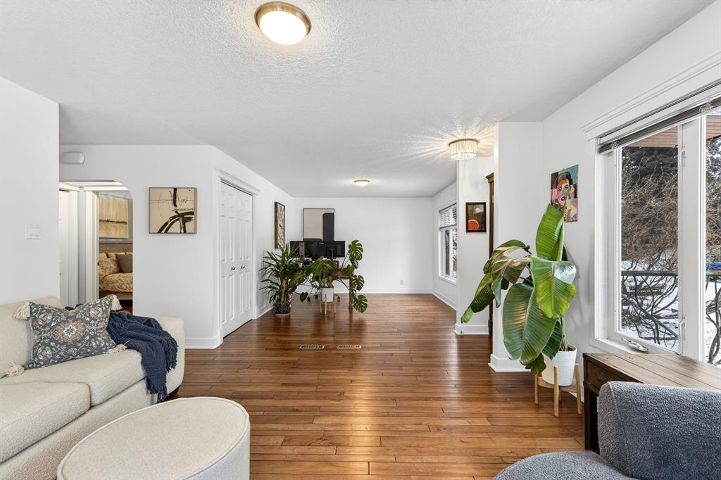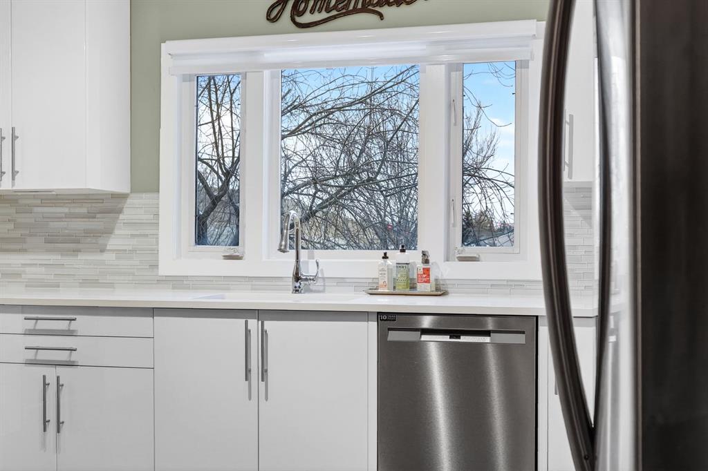 The bright and open main floor features a welcoming front entry flooded with natural light, an abundance of windows, and a spacious living room. Renovations include a new kitchen and hardwood flooring from California (2017), a fully updated main-floor bathroom (2022), and major mechanical upgrades such as a new furnace and hot water tank (2019). A versatile main-floor den or office can easily be converted back into an additional upstairs bedroom to suit your needs.