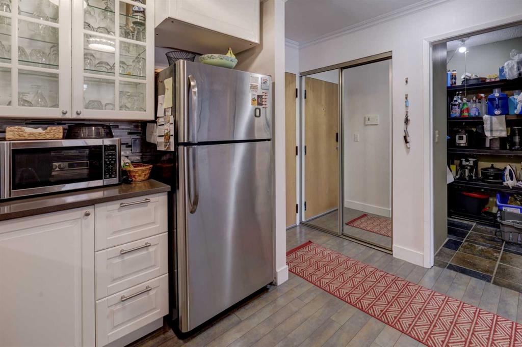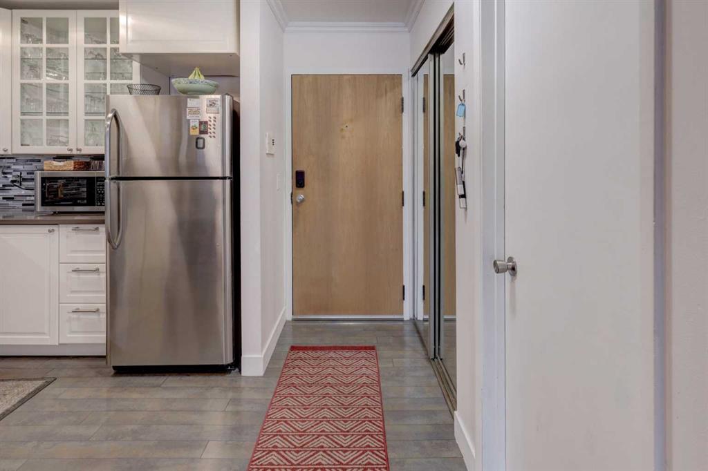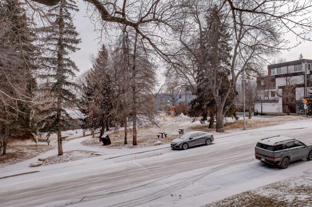 The unit also includes a covered parking stall with a plug-in, perfect for Calgary winters. It also has the added benefit of no stairs from the parkade to the unit, ensuring easy, step-free access. Located directly across from a park in a pet-friendly building, this home offers privacy while remaining just steps from the shops, restaurants, and vibrant energy of 17th Avenue.