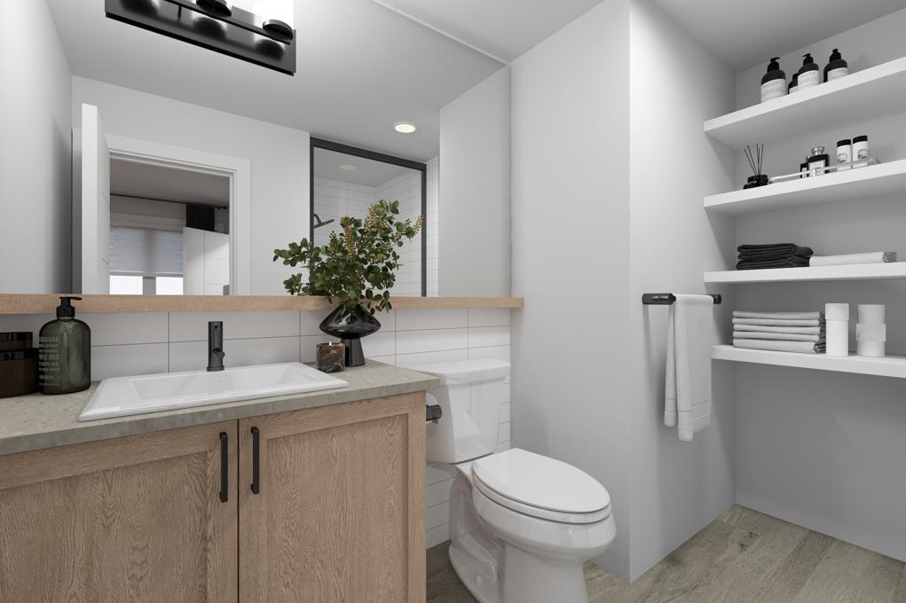 Upstairs, THREE BEDROOMS are arranged with clear hierarchy and smart separation. The primary sits at the back with its ensuite and walk-in closet, while the middle bedroom benefits directly from the end-unit position — a subtle bump-out and SIDE WINDOW that brings in natural light most interior units simply don’t get. At the front, the third bedroom includes its own walk-in closet, quietly checking a few EXTRA boxes on the upper level.