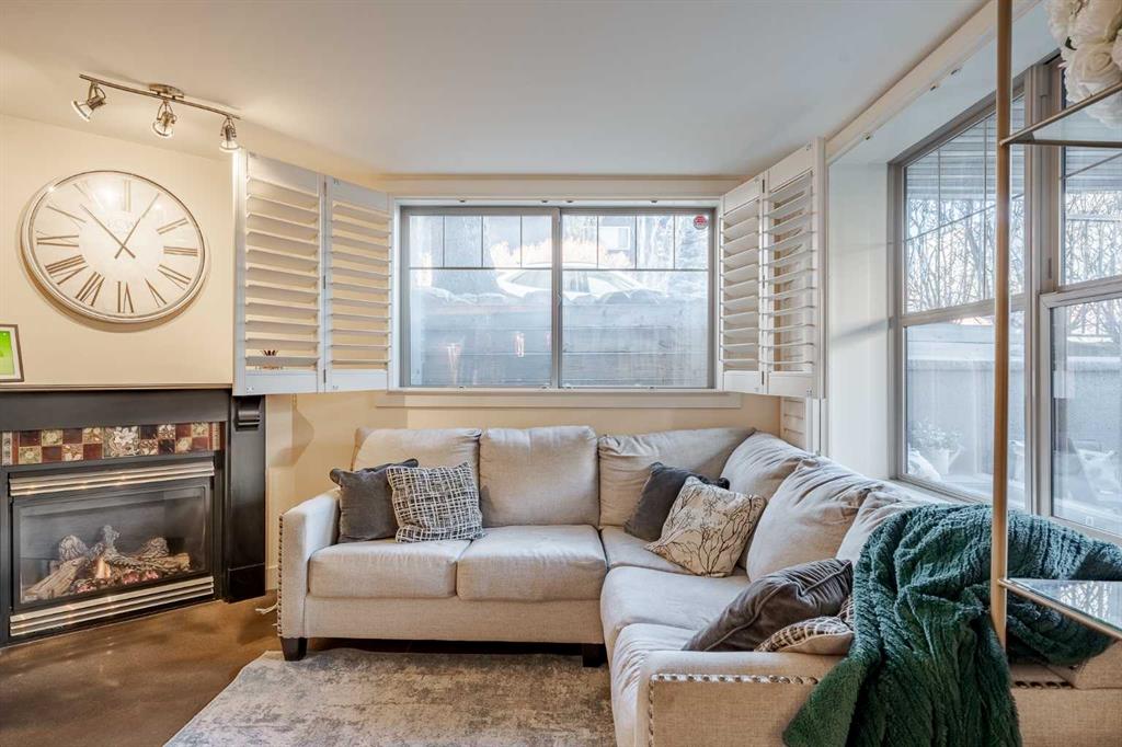 Welcome to this stylish and well maintained 2 bedroom, 2 bathroom condo in the heart of Altadore. This spacious home features a modern open-concept design with polished concrete floors and in-floor heating, offering both style and comfort. The bright, open living area is flooded with natural light from large windows and is anchored by a cozy gas fireplace, creating the perfect space for entertaining or relaxing at home. The adjacent dining area opens directly onto a private west-facing patio, ideal for enjoying afternoon sun and evening sunsets. The contemporary kitchen is thoughtfully designed with a large island and bar seating, stainless steel countertops, neutral backsplash, and stainless steel appliances. The primary bedroom includes a walk-in closet with custom shelving and a 4-piece ensuite featuring granite countertops. The well-designed, private floor plan places the second bedroom down the hall—perfect for guests, a home office, or a roommate setup. Additional highlights include in-suite laundry, a quiet and well-managed building, and assigned parking in a secure underground garage. Ideally located just blocks from River Park and Sandy Beach, and steps from the shops, cafés, and restaurants of Marda Loop, this home offers easy access to public transit and is only minutes from downtown—combining urban convenience with a relaxed neighborhood feel.