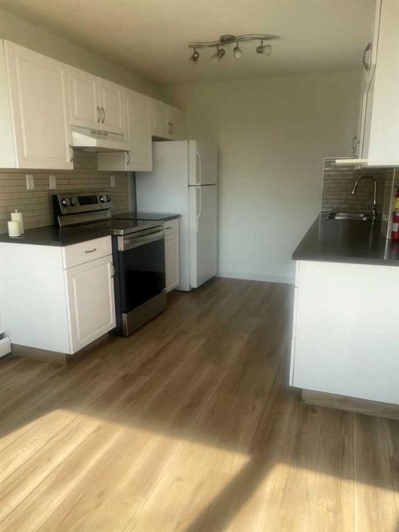 Click brochure link for more details. Beautiful 2 story, recently renovated 2 bedroom Condominium for sale. * Terrific features ! raised garden, flower beds, south facing Large private backyard, new grass sod, lg cement patio & complex is pet friendly. New Range & DW, & small appliances also included. The perks of ownership include designated parking stall outside your front gate, a storage unit, water & gas, dbl sink with subway tile, & new lg side by side washer & dryer. You’ll enjoy new ceiling fans in bdrm’s, large windows, fresh bright paint thru-out, new rugs, rot iron & solid wood railing on staircase, Jet tub in full bathroom upstairs, all new taps & hardware thru-out, & convenient 1/2 bath on main. Central location, is block away from transit bus, walking to lrt, grocery, Chinook mall, & wonderful array of restaurants & shopping along McLeod Tr just off Glenmore Tr. A must see !!