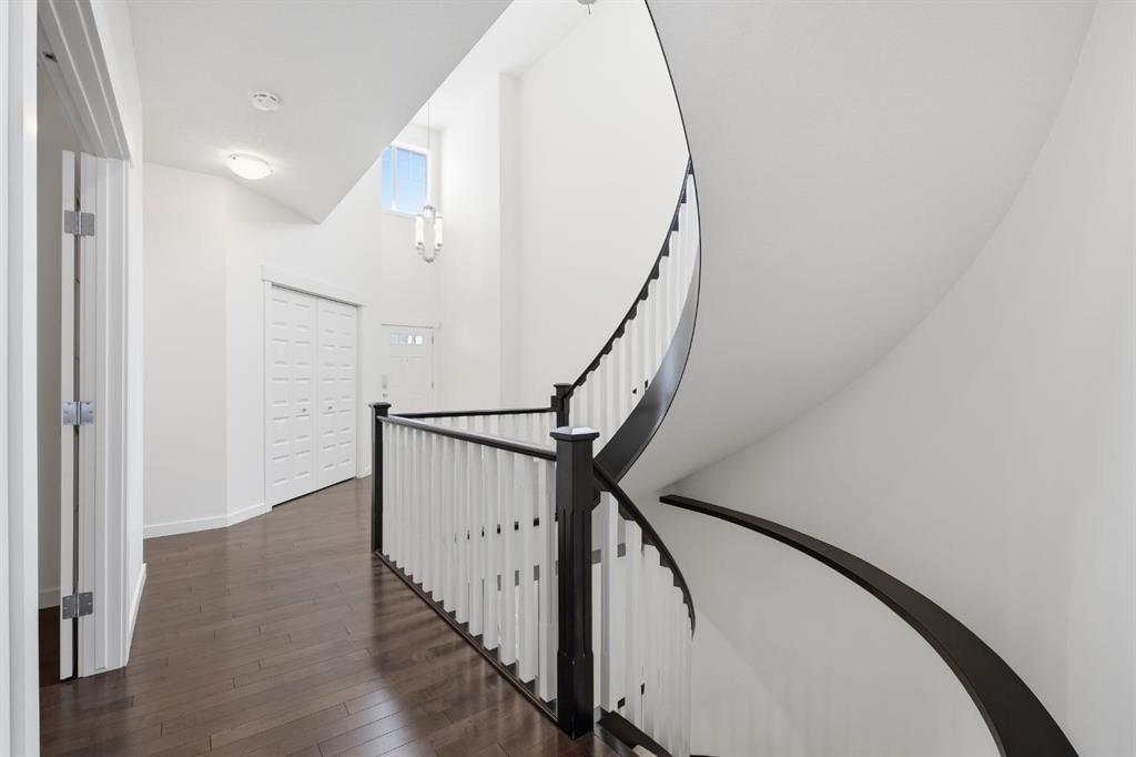 OPEN HOUSE APR 19TH 12-3PM – Welcome to this exceptional fully developed walkout home in the sought after community of Evanston, offering just over 3,800sqft of total living space with 5 bedrooms and 3.5 bathrooms thoughtfully designed for both everyday comfort and elevated entertaining. From the moment you enter, you’re welcomed by soaring open-to-above ceilings and a striking curved staircase creating a strong first impression that carries throughout the home. The main level features rich hardwood flooring, 9’ ceilings, and a seamless open concept design anchored by a sophisticated living room with a gas fireplace. The kitchen is both functional and beautifully appointed, showcasing quartz countertops, an oversized central island, stainless steel appliances, GAS COOKTOP, a walk-in pantry, and a modern backsplash perfectly suited for hosting and daily living. Just off the kitchen is a large den, perfect for a home office or additional living space.  Upstairs, the primary retreat offers a private escape, complete with a spacious walk-in closet a spa-inspired ensuite featuring dual vanities, a glass rainfall shower bringing a true luxury wellness experience into your home. Additional upper bedrooms, separated by the bonus room are generously sized and ideal for family living. The PROFESSIONALLY DEVELOPED walkout basement completed with over $100,000 in upgrades extends the home’s living space with a large recreation area, wet bar, additional bedroom, and full bathroom with high end commercial STEAM SHOWER creating the perfect setting for entertaining, guests, or multi-generational living. Step outside to a thoughtfully designed, low maintenance backyard featuring durable composite decking, a pergola, and connecting stairs between the upper and lower levels creating multiple outdoor living spaces that seamlessly blend indoor and outdoor living. A built-in irrigation system adds convenience and ease of maintenance. As well as added gas hookups on both upper and lower levels. Notable upgrades include CENTRAL AC, central vacuum, Cat5 wiring throughout, and a double attached garage equipped with a 50-amp / 250-volt EV fast charger. The home is further enhanced by a brand NEW ROOF (2025), providing both comfort and long-term peace of mind. Located near parks, schools, and amenities, this is a rare opportunity to own a turn-key walkout home that combines thoughtful upgrades, timeless design, and modern convenience in one of Northwest Calgary’s most desirable family communities. (Listing has virtually staged photos)