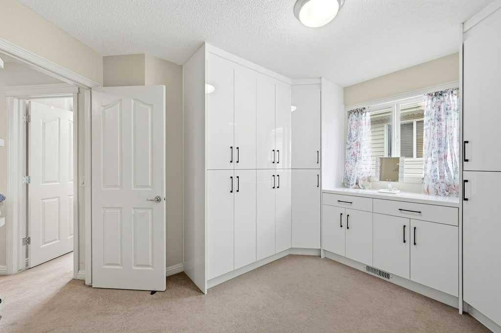 Upstairs, you’ll find a massive bonus room with three large windows, ideal for family gatherings. The primary bedroom easily accommodates a king-size bed and features a spacious 5-piece ensuite and a walk-in closet. Two additional bedrooms comfortably fit queen-size beds and include large closets. The fourth bedroom is currently customized as a makeup room with extensive built-in shelving and storage but can easily be converted back into a bedroom.