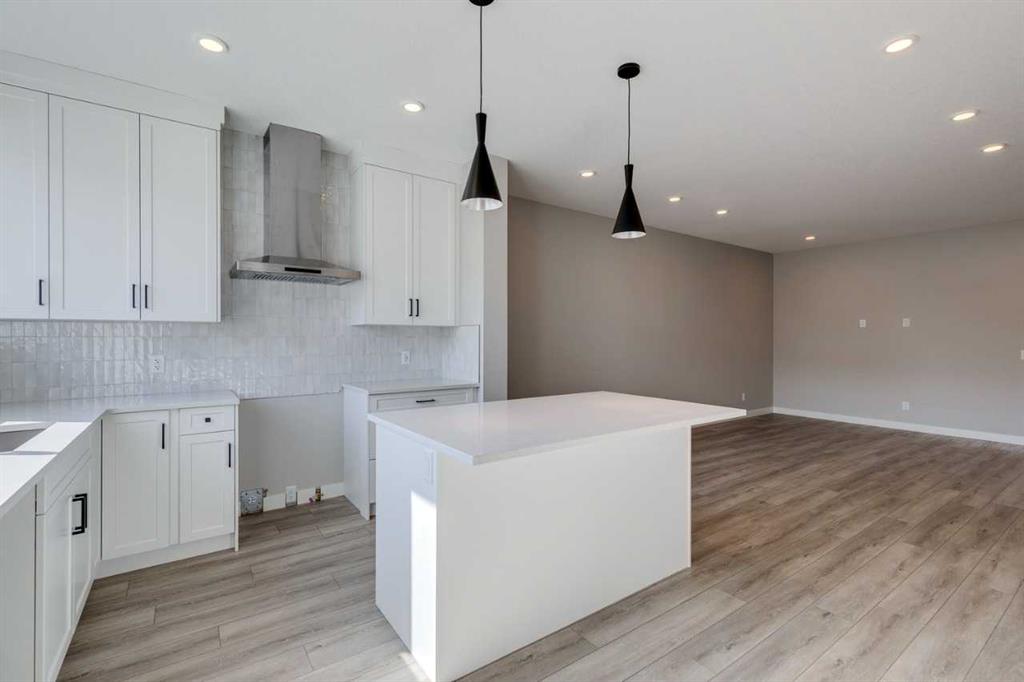 The Lucca by Cardel Homes, a Premium Paired home at 1,802 sq. ft. of well-designed living space. Its farmhouse-inspired exterior features Hardie board siding, black-framed windows, and a modern, open-concept layout. The interior boasts luxury vinyl plank flooring throughout the main floor, upper-floor loft, and hallway, creating a cohesive feel. The rear-facing kitchen overlooks the backyard and features Winter-stained maple cabinetry, quartz countertops, and Samsung stainless steel appliances. A chimney hood fan, large island, and picture window above the granite sink elevate both style and practicality. A functional back entry and walk-in pantry, ensures everyday convenience. At the front, a main-floor bedroom and full bath provide flexibility. Upstairs, the primary bedroom offers a dual-sink ensuite, while two additional bedrooms are separated by a loft space and a conveniently located laundry room. Photos are representative.