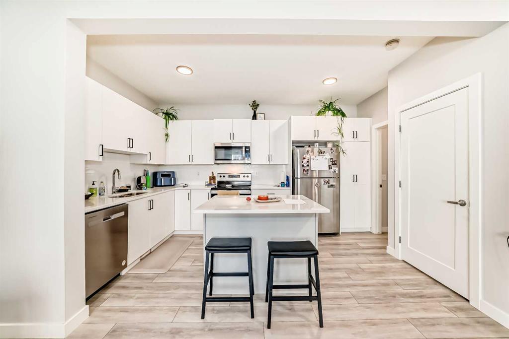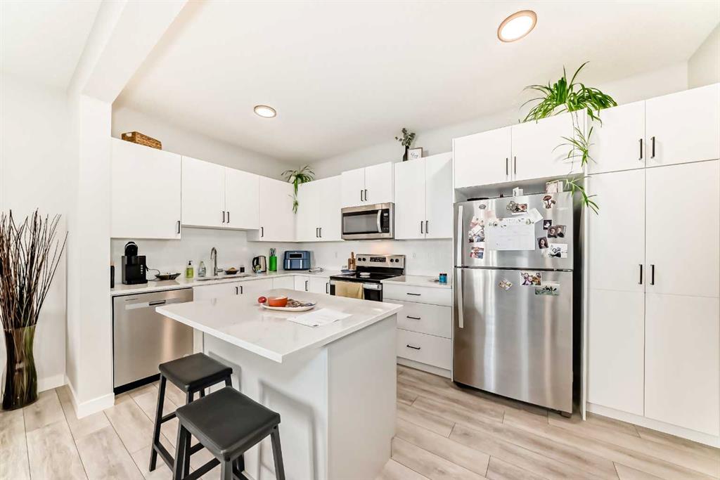 Welcome to your new 2-story townhouse nestled in the exclusive community of Tuscany. This upgraded unit with central air offers a bit of tranquility and convenience. The main living space boasts extra cabinets in the kitchen, complemented by upgraded sleek quartz countertops, an island and stainless steel appliances. An additional powder room has been added for your guests convenience, luxury vinyl flooring adds a touch of elegance, while plush carpeting provides comfort throughout the upper level. The upper level features a generously sized second room and convenient laundry with front load washer, dryer, along with a large main bathroom. Retreat to the master bedroom, complete with a large walkin closet and ensuite with; a walk-in shower, roller blinds on every window, including blackout blinds in the bedrooms. Out front you will find a private patio, with a gas bbq line to enjoy on summer nights. Located close to all amenities, including Crowchild Trail and Stony Trail, this townhouse offers both comfort and accessibility. Don’t miss the opportunity to make this your new home sweet home.