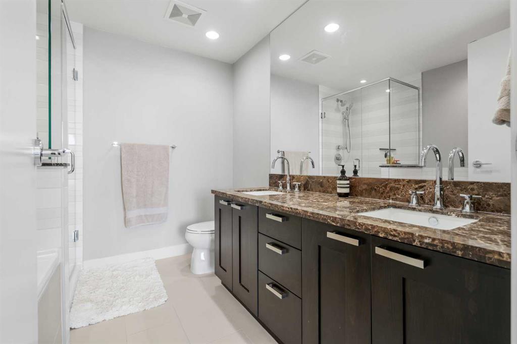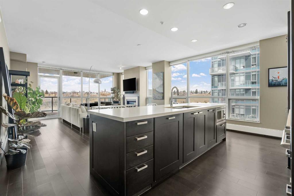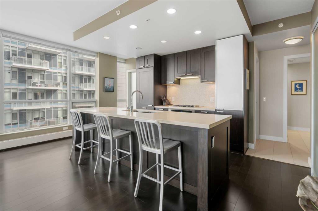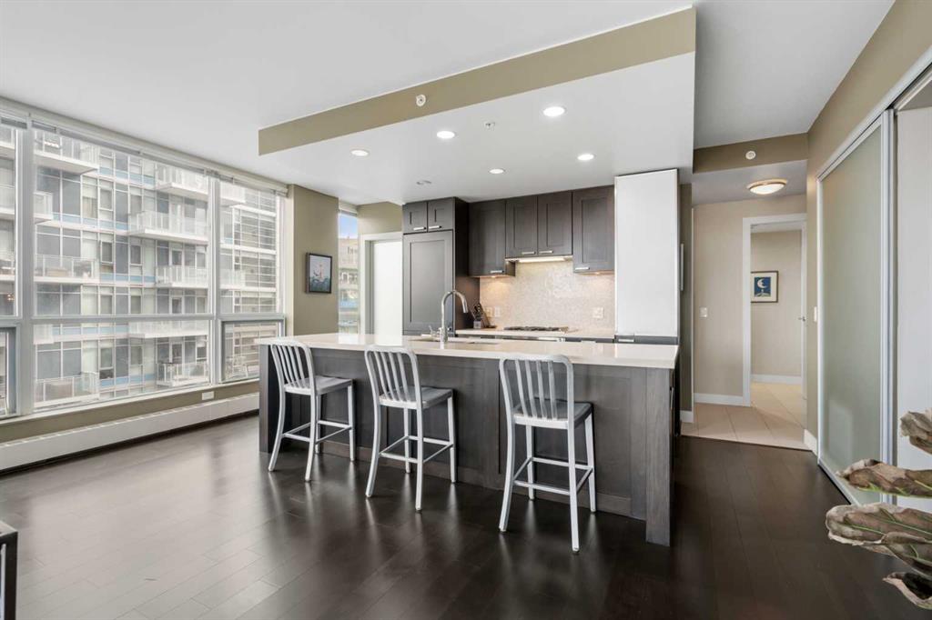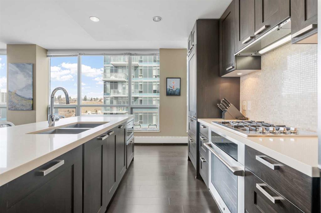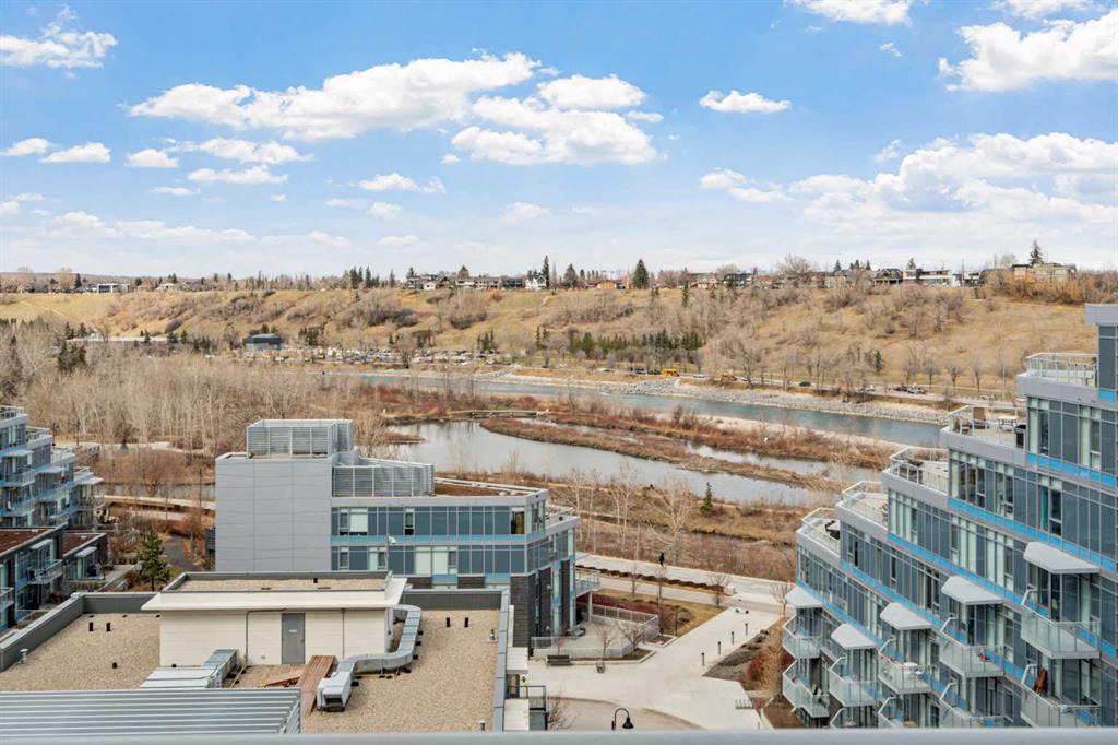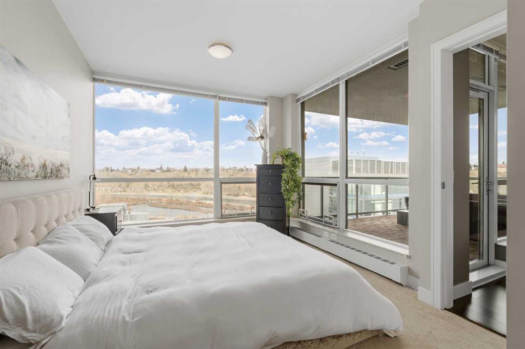 From the moment you arrive, it’s clear this isn’t just a home—it’s a full-service living experience in one of Calgary’s most amenity-rich buildings. This nearly 1,100 sq ft corner unit stands out as an incredible opportunity, offering the space, layout, and features rarely found at this price point in such a sought-after development. Step straight out onto your expansive 150 sq ft patio and take in the captivating river views—an ideal setting for morning coffee or evening unwinding. Inside, the thoughtfully designed layout delivers both function and style with 2 bedrooms, 2 bathrooms, and a versatile den perfect for a home office. The gourmet kitchen is built for entertaining, complete with a gas range, stainless steel and integrated appliances, a pantry, rich espresso cabinetry, and a large island that anchors the space beautifully. The primary suite is a true retreat, featuring continued river views, a walk-through closet, and a luxurious 5-piece ensuite. A well-separated second bedroom ensures comfort and privacy for guests. And yes—two underground side-by-side parking stalls add even more everyday convenience and long-term value. What truly elevates this home is the building itself. Waterfront is renowned for its exceptional, full-service amenities: a professional concierge, an expansive fitness centre, yoga studio, owner’s lounge, indoor jacuzzi, steam rooms, private movie theatre, guest suite, visitor parking, and even a car wash bay. It’s a lifestyle designed for comfort, wellness, and ease—all under one roof. Located just steps from Prince’s Island Park, the Bow River pathways, the +15 network, downtown core, and C-Train access, you’re perfectly positioned to enjoy both nature and city life.