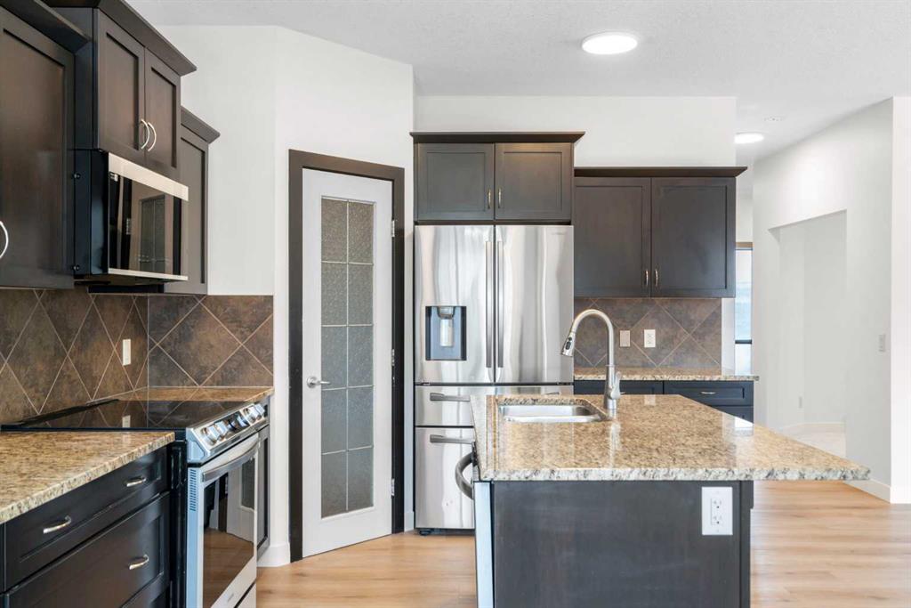 | FULLY RENOVATED | 3 BED & 2.5 BATH | BONUS ROOM & OFFICE | DOUBLE GARAGE | Welcome to this beautifully renovated home in the highly sought-after community of Williamstown in NW Airdrie—where comfort, style, and convenience come together effortlessly. Thoughtfully updated throughout, this property showcases high-end upgrades including new appliances, premium vinyl plank flooring, 40oz carpet, fresh paint, updated baseboards and trims, and more. Set in a vibrant, family-friendly neighbourhood, Williamstown offers unmatched walkability to parks, scenic pathways, peaceful ponds, the Nose Creek Preserve, and multiple amenities. A charming southwest-facing front porch sets the tone—perfect for morning coffees and relaxed evenings. Step inside to a private foyer with a coat closet, leading into a bright, open-concept main floor bathed in natural light. Newly installed flooring, a soft neutral colour palette, and large windows create a welcoming and airy feel throughout the year. A versatile office off the main living area doubles as a family room or den, offering flexibility for any lifestyle. The spacious living room features a rare gas fireplace and views of the backyard. The kitchen—designed for both everyday living and entertaining—includes granite countertops, white steel appliances, a large island, dark cabinetry, upgraded pot lighting, and a pantry for added storage. The adjacent dining area is surrounded by picturesque windows, offering an inviting space for meals or gatherings. Down the hall is a discreet powder room combined with the laundry area, along with a well-designed mudroom that connects directly to the oversized double garage, complete with epoxy flooring and LED lighting. Upstairs, the new plush carpeting ties the space together beautifully. The east wing features a massive bonus room with three large front-facing windows—ideal for an entertainment setup. The west wing hosts the spacious primary suite with a walk-in closet and a luxurious 4-piece ensuite. Two additional bedrooms and a second full bathroom complete the upper level. The undeveloped basement provides a blank canvas, equipped with bathroom rough-ins and a large egress window, ready for your future vision. Outside, the generous backyard is primed for summer enjoyment with a large deck perfect for BBQs and gatherings. You’re steps from Herons Secondary School, moments from shopping centres, and just a quick hop to local transit and QE2—making daily errands and commuting a breeze. This exceptional home delivers the perfect blend of lifestyle, location, luxury and is truly the BEST VALUE in Airdrie. Don’t miss your chance—book your private showing today.