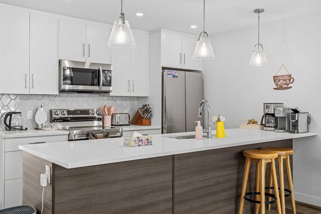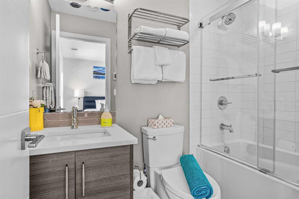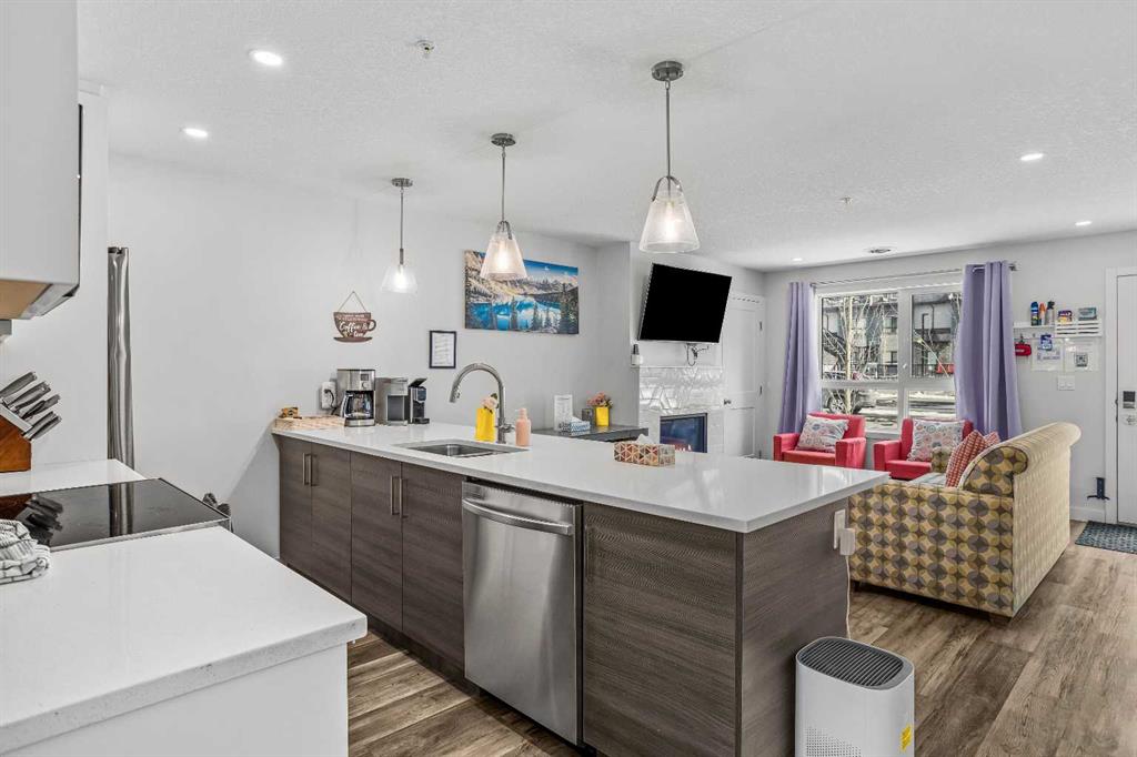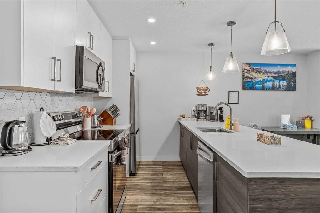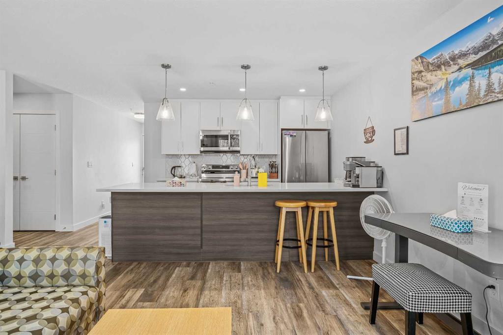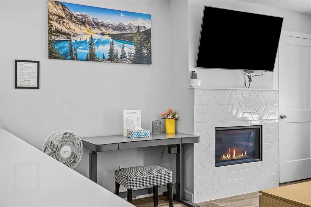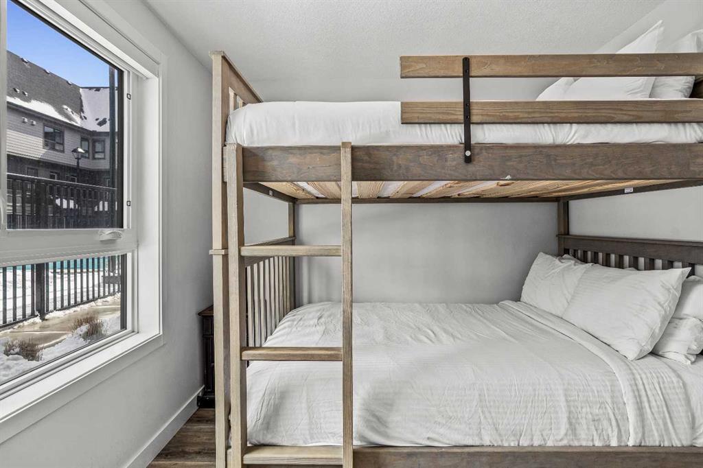 Skyline Peaks!!! Positioned at the Skyline Peaks Resort, this spacious Short Term Rental with Three-bedroom, Two-bathroom Townhouse has everything you want: Unbeatable Mountain views, convenient locations, thoughtful design on the room configuration. Don’t miss such an exceptional opportunity to own a retreat in the beautiful Canadian Rockies. The unit is town house style and it has one level living with 1011 sqft. It can comfortably host up to Ten guests, generate approximately $170,000 gross revenue every year. Amenities at the resort includes hot tub, outdoor pool, and parking. Lots of cabinets, modern fireplace, quartz countertop, big island to make it feel home for the guest. Two four-piece bath are thoughtfully designed with under floor heating. Built in 2023, the unit presents a modern and aesthetic design for both comfort, enjoyment and luxury. $1,398,000 +GST = $1,467,900. Consult your accountant about GST deferral options.