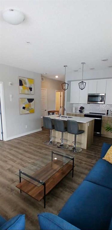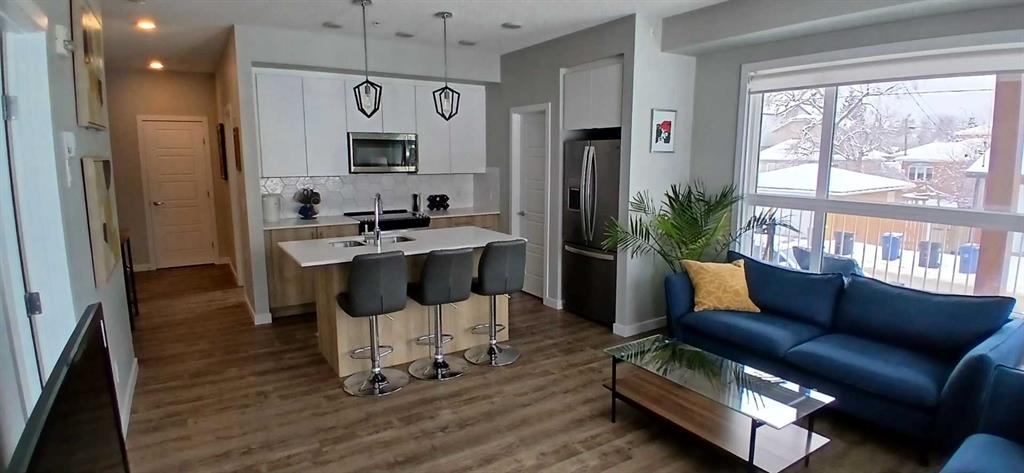 Fabulous sunny two bedroom end unit with wraparound balcony and private separate street access to unit. Located in one of Calgary‘s most popular and trendy neighbourhoods, Inglewood. Perfect for a pet owner or even as an Airbnb with the unit having its own direct access to street level. The street provides additional convenient parking for visitors or an extra vehicle. Built in 2023 this home has modern finishes and style. Sunshine pours in the large windows and the wraparound deck gives the home a private and secure feeling. The underground secure parking stall is very conveniently located directly below the unit. The spacious deck provides ample room for a barbecue and seating area. The primary bedroom comes with a spacious four piece en-suite and a walk-in closet. The second bedroom is roomy or could be the perfect office. The stacked washer and dryer is conveniently located and set privately behind its own door. The bright kitchen complete with quartz countertop and island has a large walk-in pantry. Inglewood comes with every amenity too numerous to mention! Famous for its micro breweries, trendy restaurants, jazz, lounges, specialty stores, and even its own art gallery. Inglewood is just minutes to downtown, the Bow River and East Village home to Calgary‘s new Event Centre.