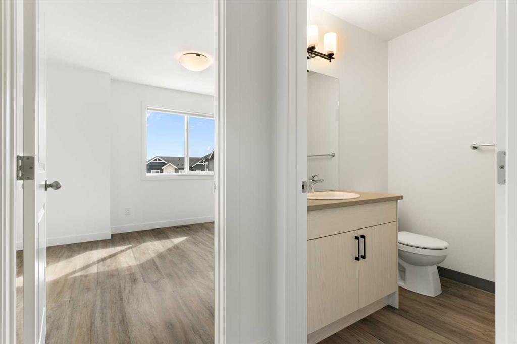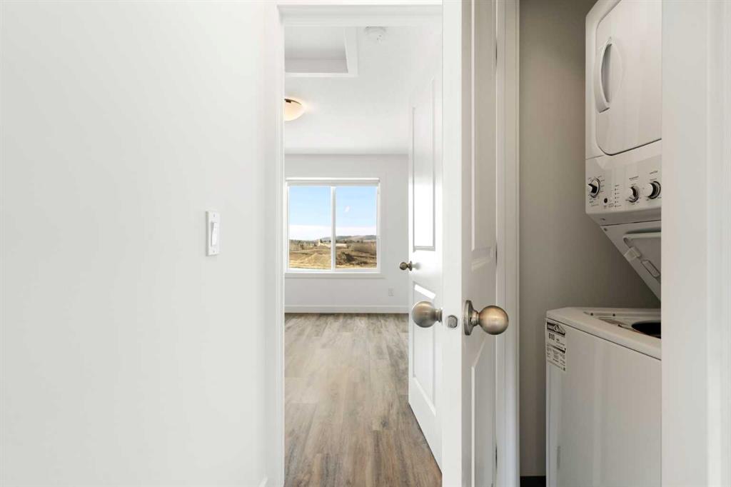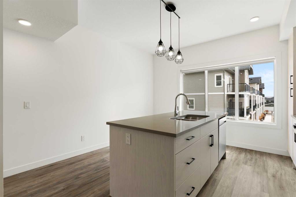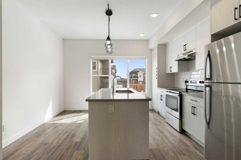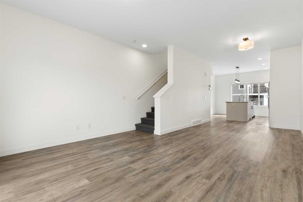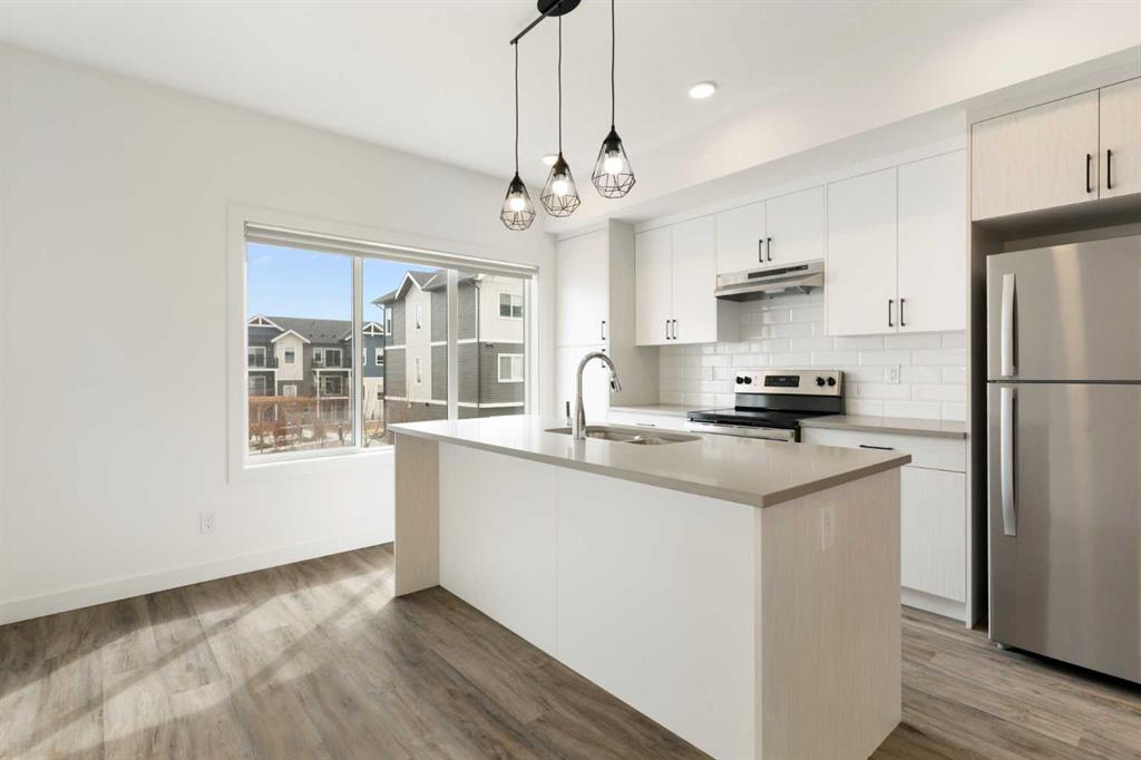 Experience the best of modern living in this lightly lived in Cochrane townhome. , enjoy a west facing backdrop! Located directly across from the future Rivercrest School! and offering stunning Mountain Views! The last interior unit with a deck facing the Mountains! Inside, discover a bright, open-concept haven designed for both entertaining and everyday comfort. The kitchen is the heart of the home, featuring a sprawling white quartz island perfect for casual meals or lively gatherings. You’ll love the sleek two-tone cabinetry with soft-close drawers, a full GE stainless steel appliance package, ample cabinet space, and a pantry, all illuminated by stylish pendant lighting. Large windows on both sides of the unit flood the space with natural light, highlighting the durable vinyl plank floors and soaring, knock-down textured ceilings. Pull-down window coverings offer privacy and shade when desired, while the adjacent living room provides a natural gathering spot. This meticulously designed townhome offers two spacious bedrooms, 2.5 baths, and a versatile flex space on the main level—perfect for a home office, guest room, or creative studio. The primary suite on the third level boasts dual closets for ample storage and large windows and its own 4pc ensuite. This level also features a convenient laundry area and a full 4-piece bath for the other bedroom. Convenience is paramount with the oversized, fully insulated single-car garage, with dual access (doors on both sides of the unit) Location is key! Nestled in a fantastic complex, you’re just steps from shopping, scenic pathways, and the tranquil Bow River. Bow Valley High School is close by, with a Cochrane’s newest school (K-8 Breaking ground this Spring) conveniently located next door , and local transit is mere steps away. Enjoy quick access to Calgary for work or entertainment and the majestic mountains for weekend adventures.