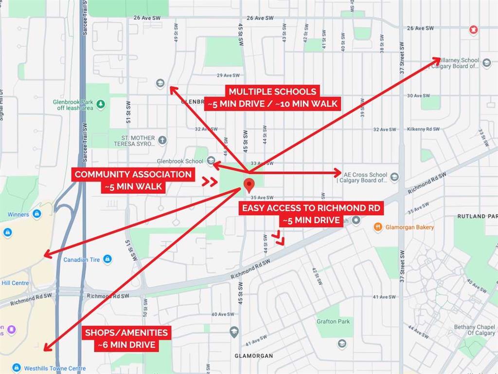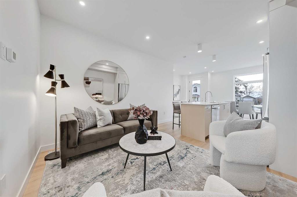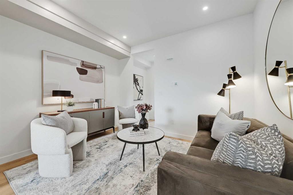 *VISIT MULTIMEDIA LINK FOR FULL DETAILS & FLOORPLANS!* BRAND NEW TOWNHOME PROJECT COMING SPRING 2026 TO GLENBROOK! With 5 upper-level units, and 5 lower-level units, this modern townhome project is sure to impress, with an unbeatable inner-city location! This lower-level unit boasts a sunny main floor plus a FULLY FINISHED BASEMENT totalling nearly 1,000 sq ft of developed living space, with 2 beds & 2.5 baths. Accessible by a private entrance facing the street, the sunny main floor showcases low-maintenance luxury vinyl plank (LVP) flooring, and an open-concept living space with large windows. The modern kitchen features 2-tone slab-style cabinetry, quartz counters, and a Samsung stainless steel appliance package including a French-door refrigerator and ceramic top stove. The adjacent dining room is perfect for family meals and entertaining, while the living room’s oversized window fills the space with natural light. A stylish 2-pc powder room completes this level. Downstairs, 2 bedrooms and 2 full bathrooms reside. Each bathroom boasts custom cabinetry, quartz counters, undermount sinks, and tiled tub/showers. Completing the basement is a convenient laundry closet. Durable and stylish, the exterior features Hardie Board and Smart Board detailing, and brushed concrete steps and walks. Located in the heart of the sought-after SW inner-city community of Glenbrook, these brand-new townhomes boast a fantastic location right across the street from Glenbrook School and the Glenbrook Community Association. A number of major amenities are located within an easy 15-min walk, including Safeway, Glamorgan Bakery, and multiple restaurants including Richmond’s Pub. Plus, nearly every imaginable amenity can be found in nearby Westhills and Signal Hill Centres which are just a 6 minute drive away. Although peacefully tucked away on a lovely residential street, Sarcee Trail and Richmond Rd are both readily accessible, making everyday commuting around the city a breeze! Make this new townhome yours! *Interior photos are samples taken from a past project – actual finishes may vary.