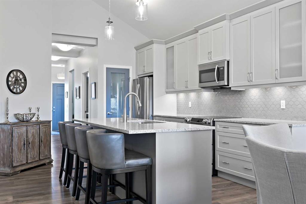 This immaculate bungalow villa blends upscale design with practical living, offering the perfect home base for empty nesters, snowbirds, or anyone ready to enjoy a simplified, low-maintenance lifestyle. Located in a peaceful small-town community, this home provides the quiet comfort of no neighbours behind you, allowing for exceptional privacy and relaxed outdoor enjoyment from your sunny south-facing backyard that is complete with a maintenance free composite deck with a powered awning.