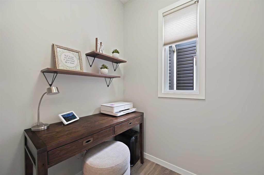 Your main-floor primary suite offers peaceful retreat with a spa-style ensuite featuring double sinks, quartz counters, soaker tub, and a separate shower. Enjoy the added comfort of main-floor computer workstation area and main floor laundry just steps away, making daily tasks effortless.
