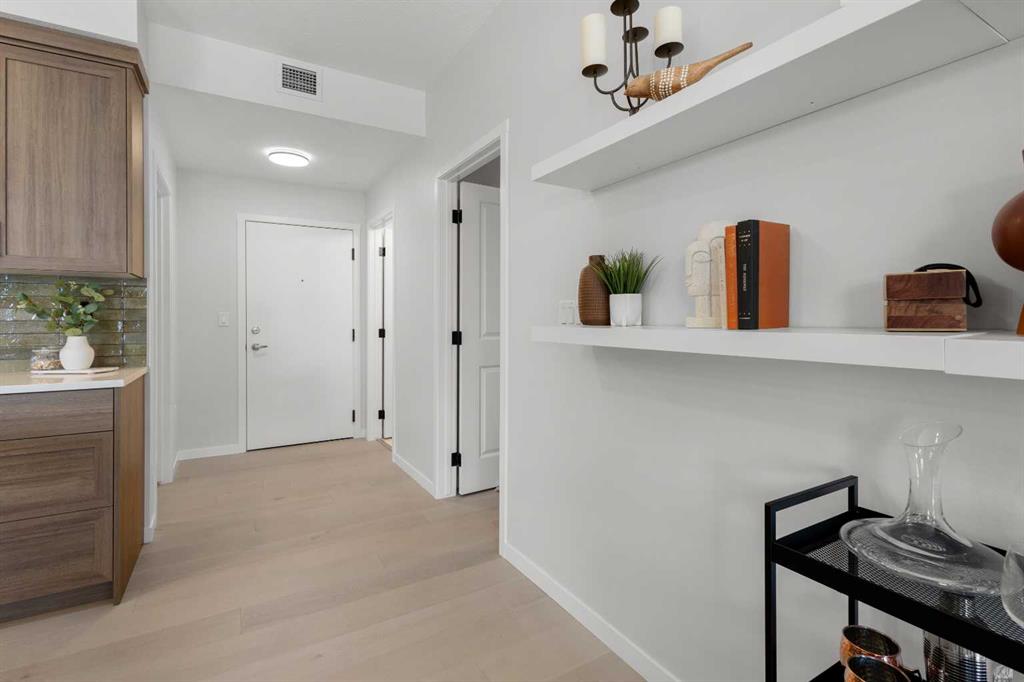 Welcome to 80 Carrington Plaza NW — a former Cedarglen show home offering elevated design, premium upgrades, and outstanding long-term value. This 1,283 sq ft main-floor condo features 3 bedrooms and 2 full bathrooms, combining refined finishes with a highly functional layout ideal for both discerning homeowners and savvy investors. The open-concept living space is anchored by a stylish fireplace and flows seamlessly into a designer kitchen complete with built-in appliances, upgraded cabinetry, a pantry, and a built-in wine fridge—features that elevate everyday living while enhancing rental desirability. As a former show home, this unit stands apart with thoughtful details, timeless finishes, and a level of quality rarely found in condo living. The primary suite offers a walk-in closet and private 4-piece ensuite, while two additional bedrooms provide flexibility for guests, home office use, or family living.
