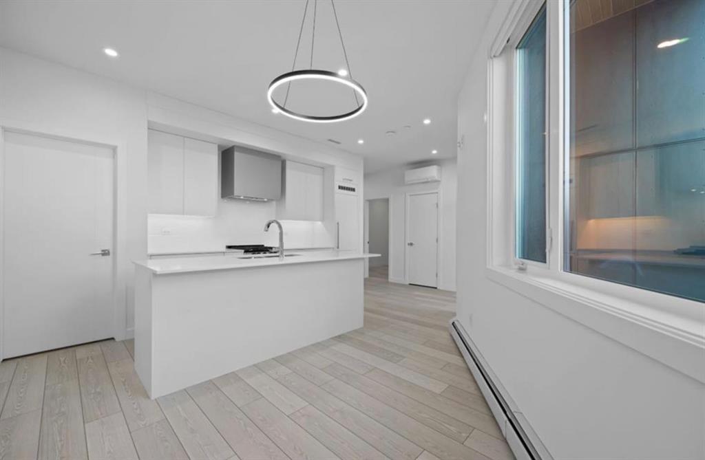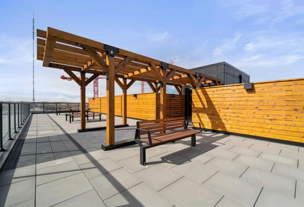 Nestled in the heart of West District, Mondrian offers the perfect blend of comfort, style, and practicality—ideal for those who appreciate the simplicity and convenience of urban living. Thoughtfully designed, this intimate yet efficient home maximizes space while maintaining a warm and inviting atmosphere. As you step inside, the open-concept layout creates an airy feel, with a functional and stylish kitchen at its heart. Featuring premium appliances, including an integrated refrigerator, gas range, and built-in microwave, it’s perfect for preparing meals in the comfort of your own home. The living area extends seamlessly to a private patio, offering a peaceful retreat for morning coffee or evening relaxation. The two bedrooms provide a restful escape, designed for both comfort and tranquility. Additional conveniences include in-suite laundry, air conditioning, and window coverings throughout, ensuring everyday ease. The unit also includes one underground parking stall. Beyond your private space, Mondrian elevates the living experience with its rooftop terrace, where you can unwind in the seating areas while taking in views of the vibrant West District. Whether enjoying a quiet moment or gathering with friends, this space is perfect for every occasion. Ideally located just steps from trendy shops, dining, and green spaces, Mondrian offers unparalleled convenience in one of Calgary’s most desirable neighbourhoods. Move-in ready, this cozy residence is waiting for you to call it home.