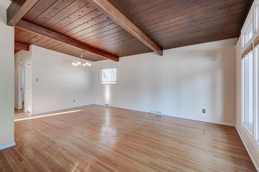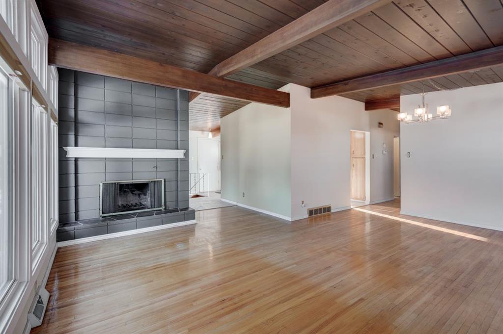 Hardwood floors, two fireplaces, vaulted beams throughout main floor and garage, south-facing yard, paved lane, park access, flex rooms, open-concept potential, and energy upgrades – this home is ready for your vision! Check out the virtual tour in the links. Quick possession avaiable. Book your showing today.