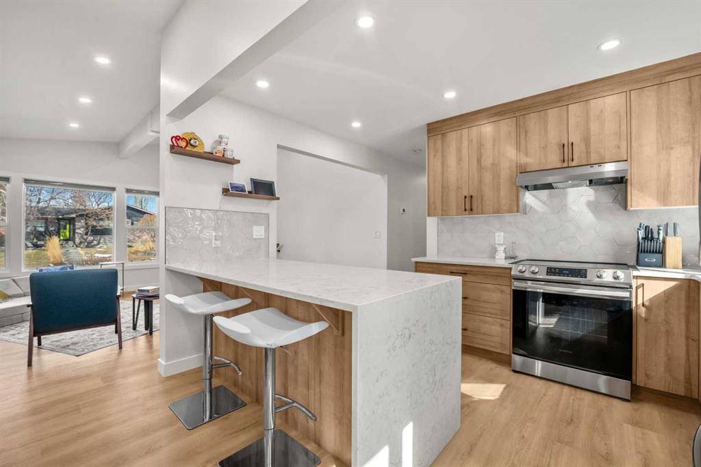 Step inside to a bright and inviting main floor featuring wide-plank flooring, clean lines, and a contemporary aesthetic throughout. The spacious living room is filled with natural light and flows seamlessly into the dining area, creating an ideal space for both everyday living and entertaining. The beautifully updated kitchen showcases sleek cabinetry, quartz countertops, stainless steel appliances, and a stylish backsplash, all designed with both form and function in mind.