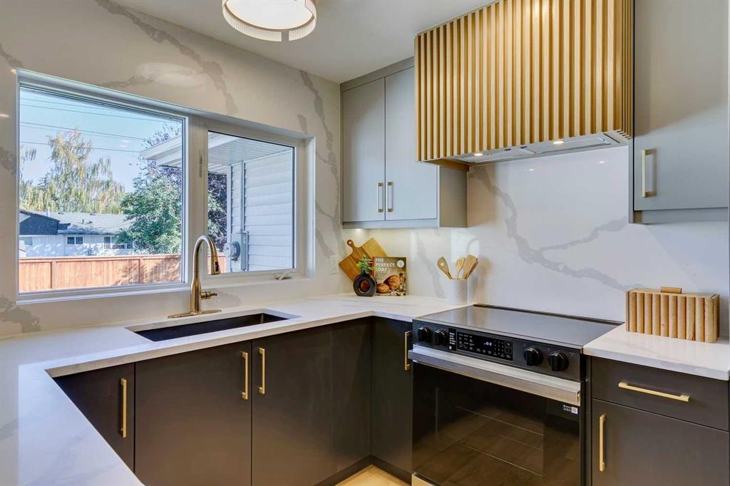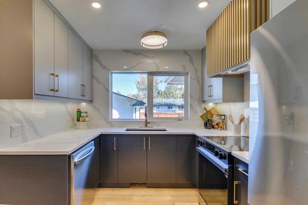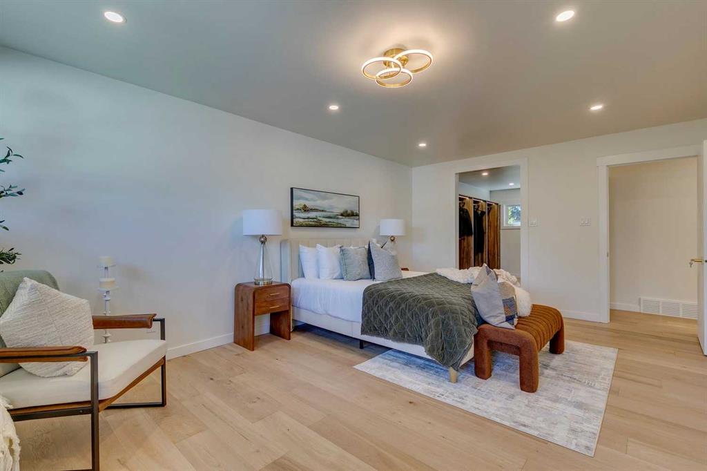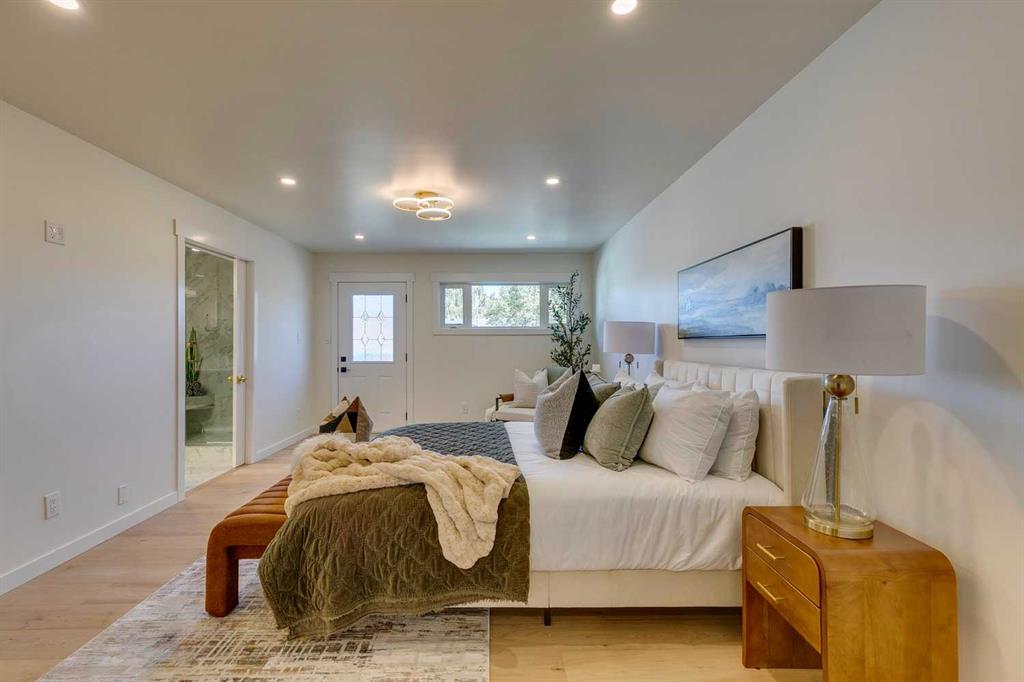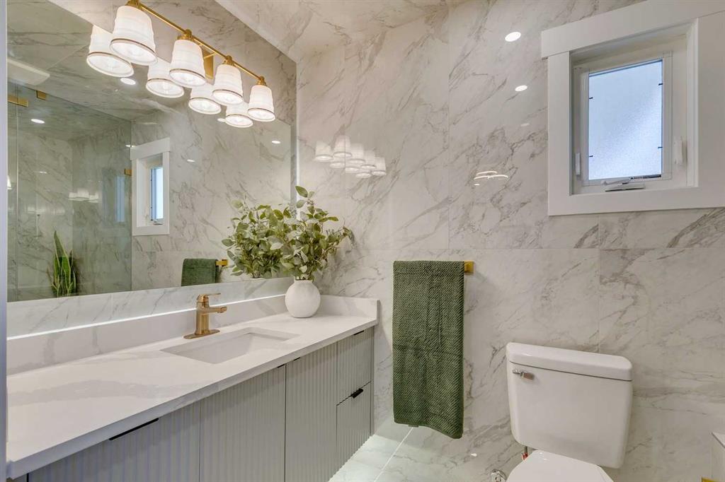 Fully renovated bungalow in Maple Ridge featuring a complete transformation inside and out. The exterior showcases new stucco and a front concrete walkway, complementing the updated furnace, windows, and roof shingles completed in recent years. This beautifully appointed 4-bedroom, 3-bathroom home offers brand new hardwood flooring throughout the main level and a modern kitchen with all new appliances. Each bathroom has been fully upgraded with wall-to-wall slab tiles and heated floors. The spacious primary suite includes a private balcony, luxurious ensuite with LED accents, a steam shower, and a large walk-in closet with custom millwork and LED lighting. The lower level is equally impressive, featuring a fully finished laundry room, custom millwork in the bar and entertainment area, two additional bedrooms, and a full bathroom with heated floors. The property also includes a generous backyard and an oversized garage. This stylish, turn-key home is vacant and ready for immediate possession.