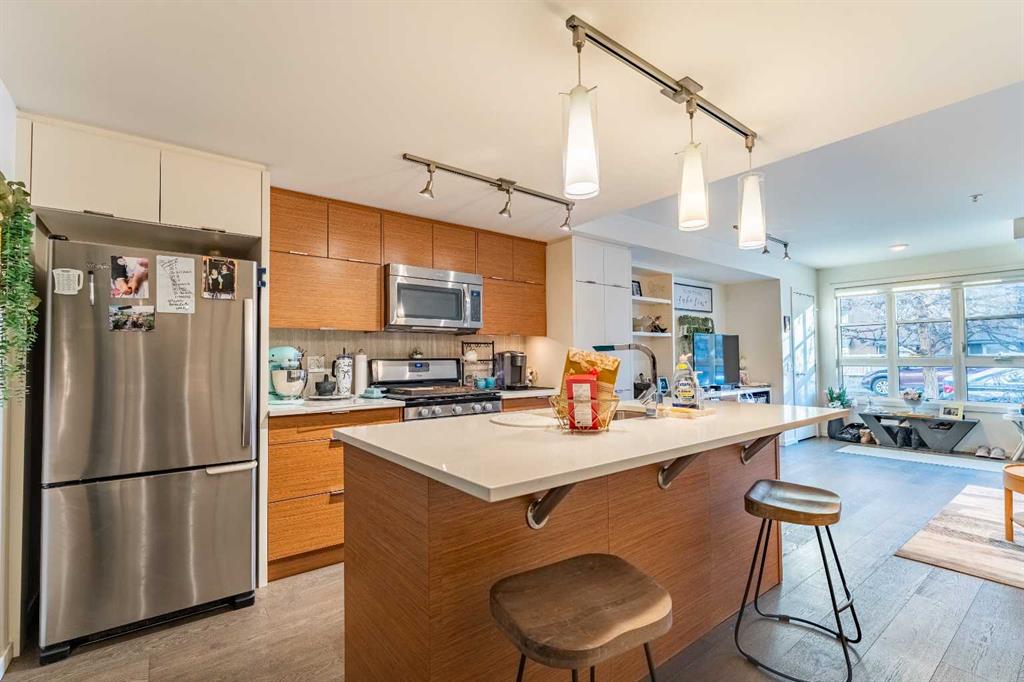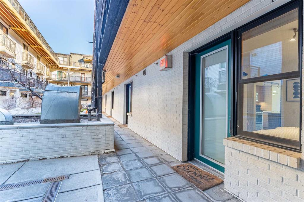 Welcome to The Block, featuring some of the most desirable walkout brownstone-style one-bedroom units in the building—rarely available. Located on a quiet street just off 17th Avenue, this pet-friendly condo offers the ideal balance of inner-city convenience and peaceful living. The bright, open-concept layout is filled with natural morning sunlight and features hardwood flooring throughout (no carpet), flat ceilings, upgraded pendant lighting, custom built-in millwork shelving, a 10mm glass shower door, and a recently upgraded LG washer and dryer. In-floor heating provides year-round comfort with no furnace or hot water tank to maintain. Enjoy your private east-facing walkout patio, shaded by a mature oak tree. The professionally designed central courtyard offers seating, patio lighting, and a strong sense of community—ideal for summer evenings and social gatherings. Designed for a true lock-and-leave lifestyle, condo fees include everything except electricity. The unit includes a titled underground heated parking stall with storage. Unbeatable location steps to Urban Fare, Made by Marcus, Mik Coffee & Art, Canadian Tire, bike paths, parks, the river, and all the amenities of 17th Avenue. A rare opportunity to own a low-maintenance home in one of Calgary’s most walkable inner-city communities. Book your showing today !