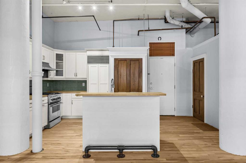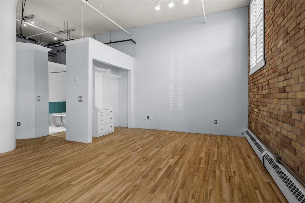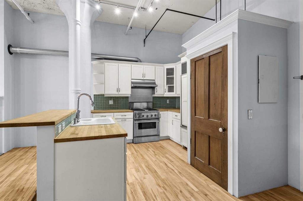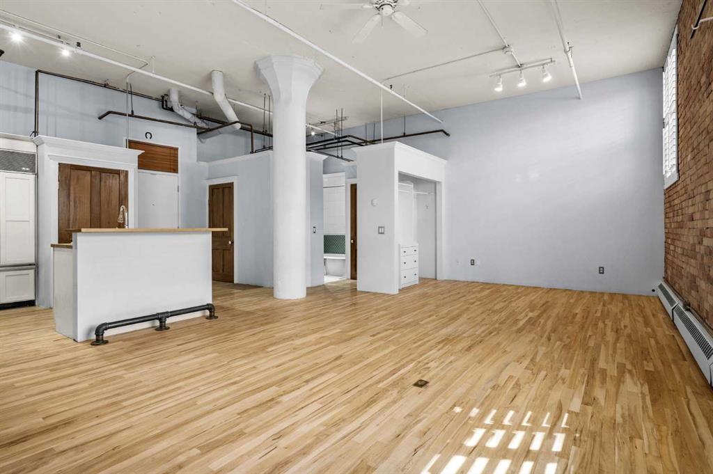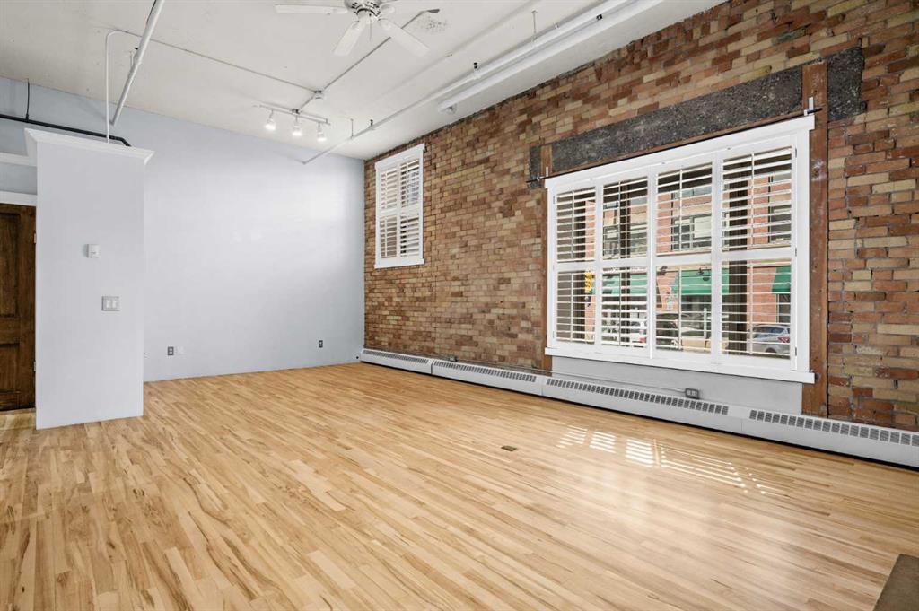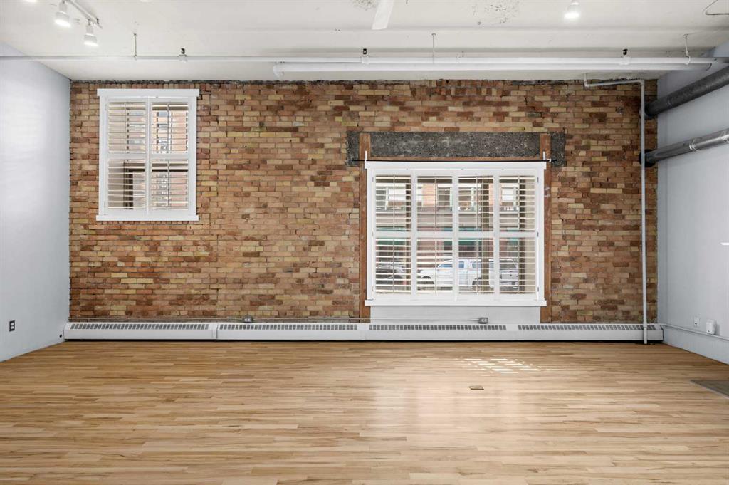 Welcome to the Lewis Loft Building, a historic gem nestled in the vibrant Beltline district of Downtown Calgary. This stunning unit boasts an open layout that seamlessly combines modern luxury with vintage charm. Hardwood floors and soaring high ceilings complement the exposed brick walls, creating an inviting and spacious atmosphere. The kitchen features stainless steel appliances, gas range, and striking butcher block countertops. A breakfast bar and ample cupboard space make this kitchen as functional as it is stylish. The living room is a cozy retreat with a large window that floods the space with natural light and a gas fireplace that adds a touch of warmth and elegance. Convenience is key with in-suite laundry, underground heated parking ( #45), and an additional storage locker (#56). Note the exceptional roof top retreat/patio area just one floor above. Attention to detail and meticulous care of this unit includes … Floors – repaired, sanded and refinished (January), ceiling painted (March), unit painted (2022), cabinets refinished (2024), wash/dryer (2022). The location is unbeatable, situated close to transit, tennis courts, parks, and an array of restaurants. Just a few blocks from both Stephen Avenue and 17th Avenue, you’ll be in the heart of Calgary’s cultural and social scene. Lewis Lofts is in the process of applying for Heritage Status. Pet lovers will be pleased to know that, with Board approval, the Lewis Loft Building allows for one dog and one cat or two cat. Come and experience the perfect blend of historic character and contemporary comfort.
