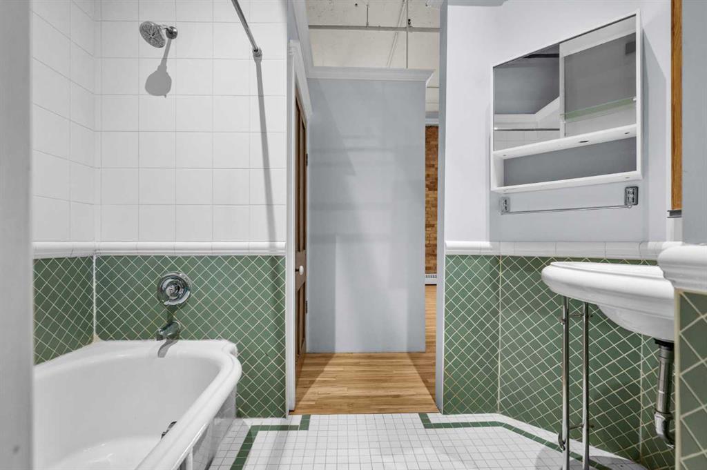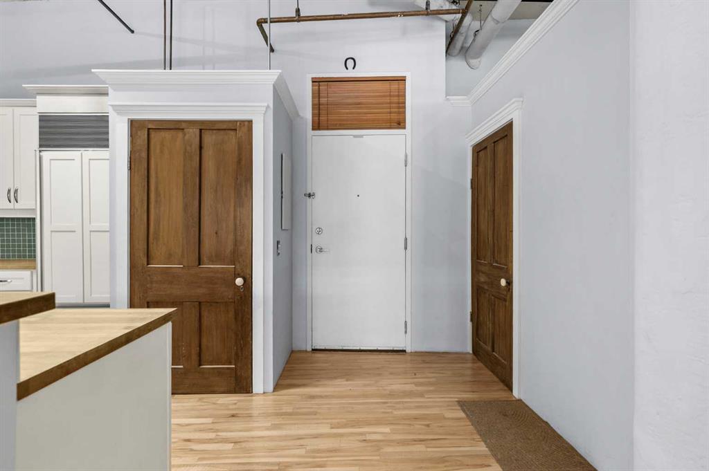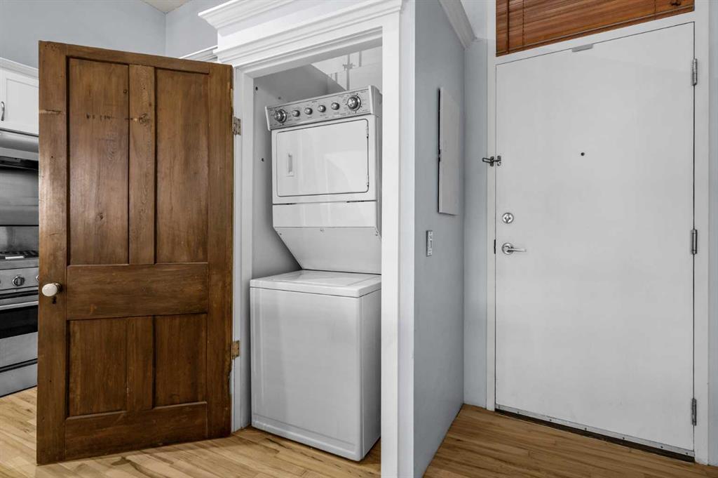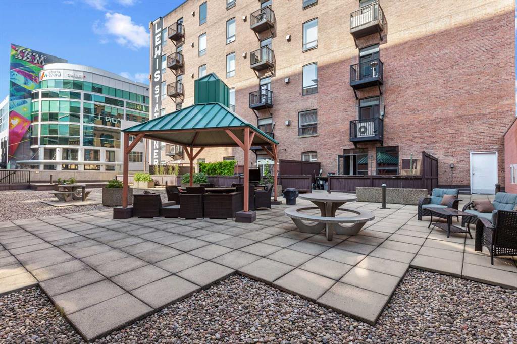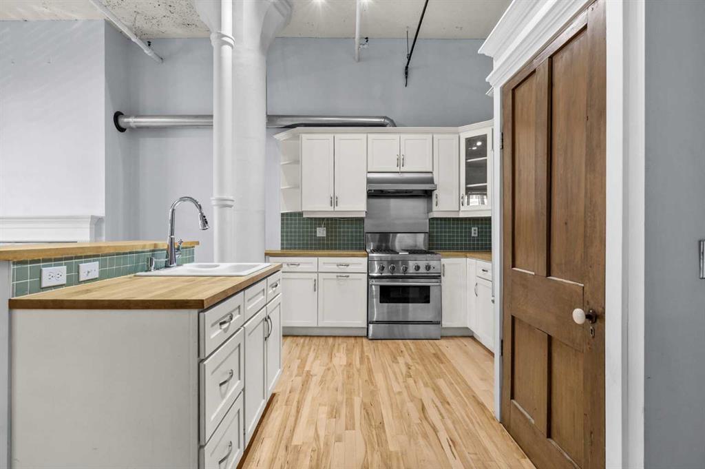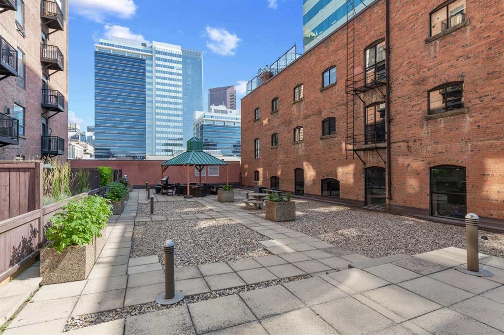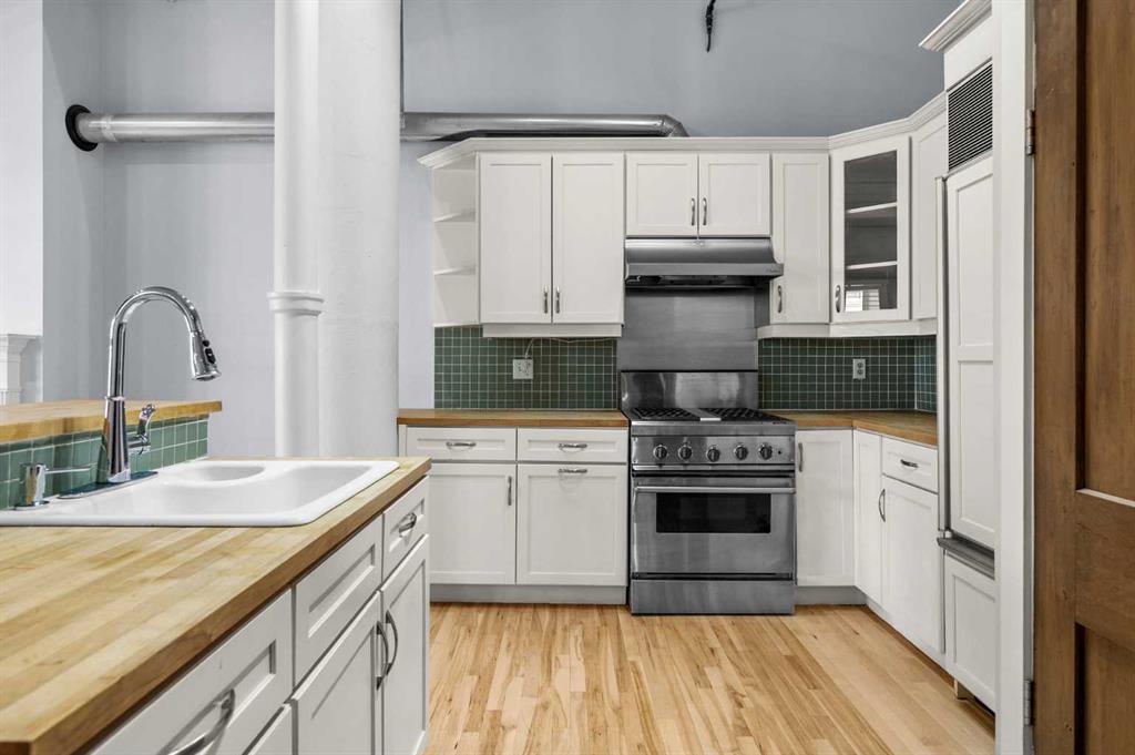 Welcome to the Lewis Loft Building, a historic gem nestled in the vibrant Beltline district of Downtown Calgary. This stunning unit boasts an open layout that seamlessly combines modern luxury with vintage charm. Hardwood floors and soaring high ceilings complement the exposed brick walls, creating an inviting and spacious atmosphere. The kitchen features stainless steel appliances, gas range, and striking butcher block countertops. A breakfast bar and ample cupboard space make this kitchen as functional as it is stylish. The living room is a cozy retreat with a large window that floods the space with natural light and a gas fireplace that adds a touch of warmth and elegance. Convenience is key with in-suite laundry, underground heated parking ( #45), and an additional storage locker (#56). Note the exceptional roof top retreat/patio area just one floor above. Attention to detail and meticulous care of this unit includes … Floors – repaired, sanded and refinished (January), ceiling painted (March), unit painted (2022), cabinets refinished (2024), wash/dryer (2022). The location is unbeatable, situated close to transit, tennis courts, parks, and an array of restaurants. Just a few blocks from both Stephen Avenue and 17th Avenue, you’ll be in the heart of Calgary’s cultural and social scene. Lewis Lofts is in the process of applying for Heritage Status. Pet lovers will be pleased to know that, with Board approval, the Lewis Loft Building allows for one dog and one cat or two cat. Come and experience the perfect blend of historic character and contemporary comfort.