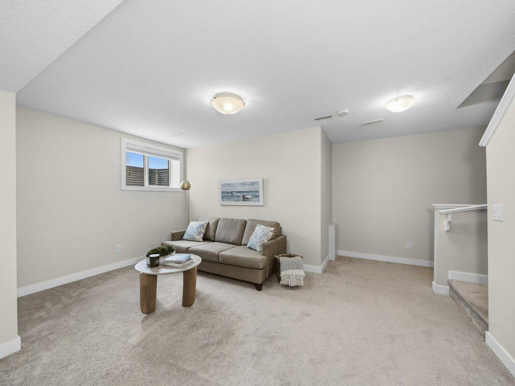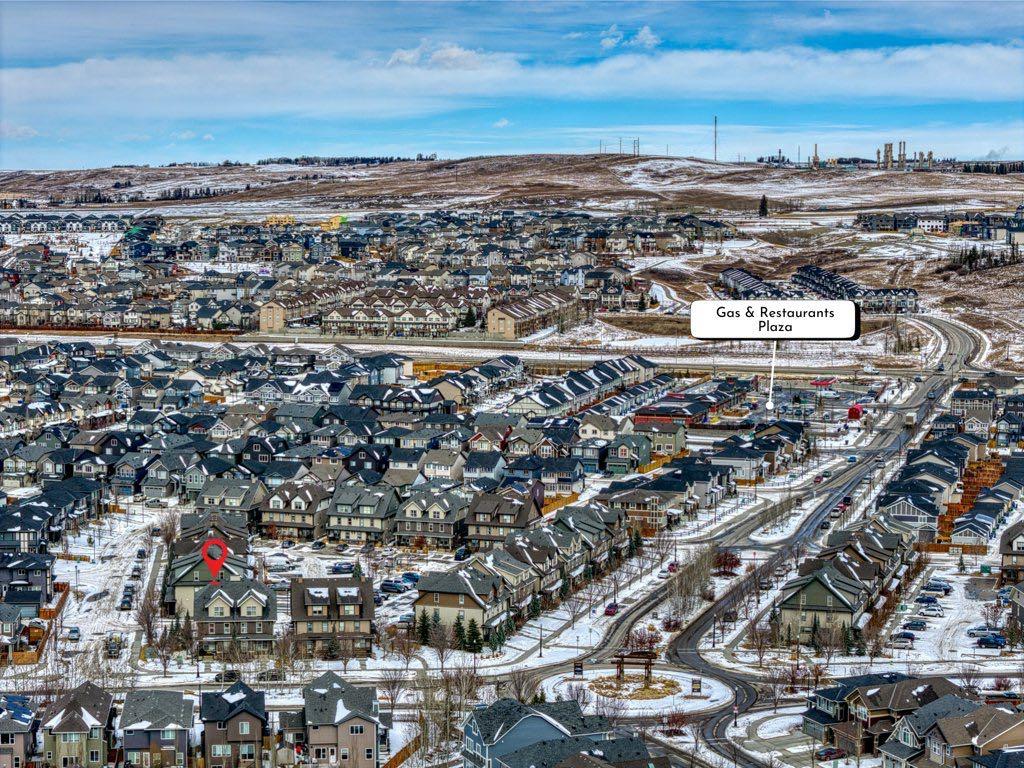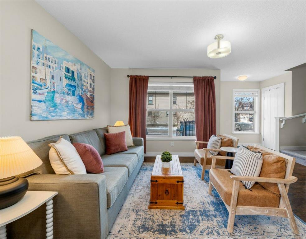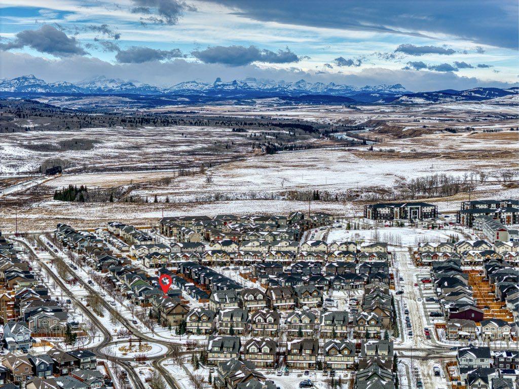 This well-maintained 3 bedroom end-unit townhouse in the Heartland community of Cochrane offers a functional three-level layout plus a fully finished basement. The open concept main floor features a contemporary kitchen with quartz countertops, stainless steel appliances and ample cabinetry, opening to a bright living and dining area with large windows and plenty of natural light. The second level includes two good sized bedrooms and a full bathroom, while the top floor is dedicated to a spacious primary bedroom retreat with a walk-in closet, 4-piece ensuite and mountain views. A major advantage of this unit is the fully developed basement, providing a spacious rec room ideal for a home theatre, kids’ play area, workout space or home office. This is a true corner end unit with no building directly beside it, allowing for additional privacy, natural light and open views. The extra-long titled tandem parking stall accommodates two vehicles and is located directly adjacent to the unit, with ample street parking available for guests. Great family home close to the parks, pathways and Heartland amenities.