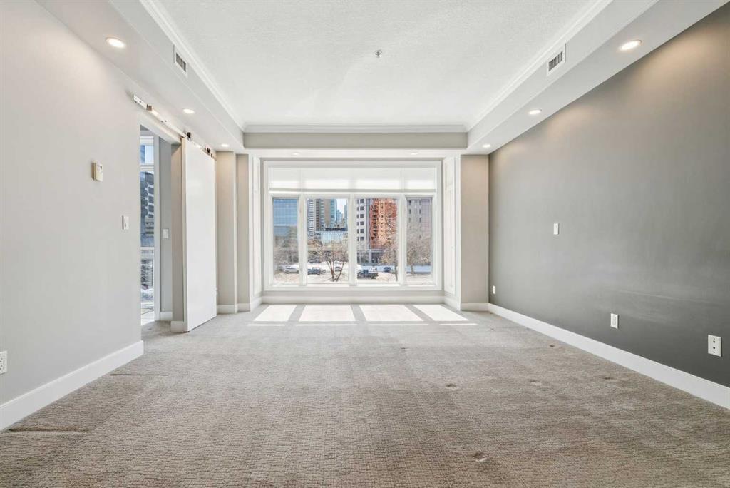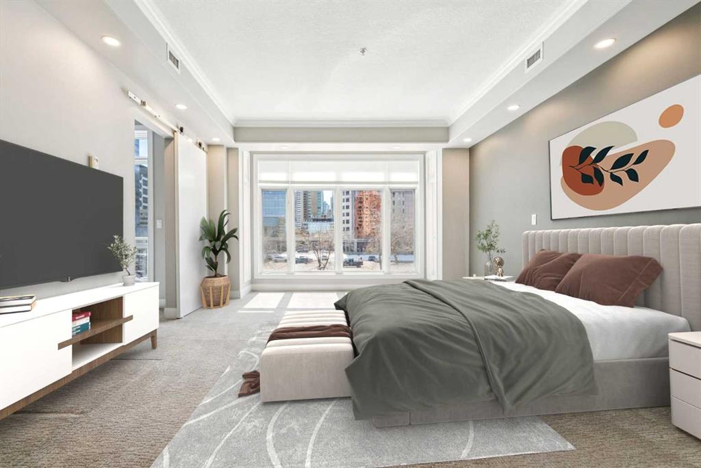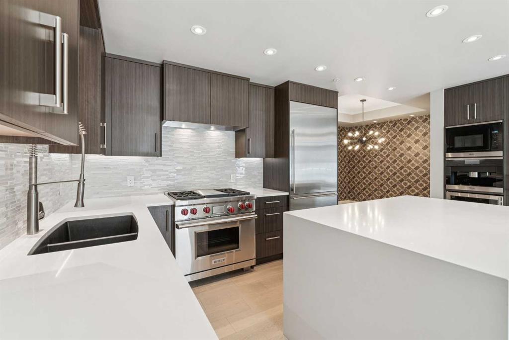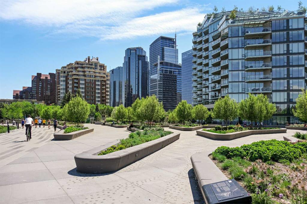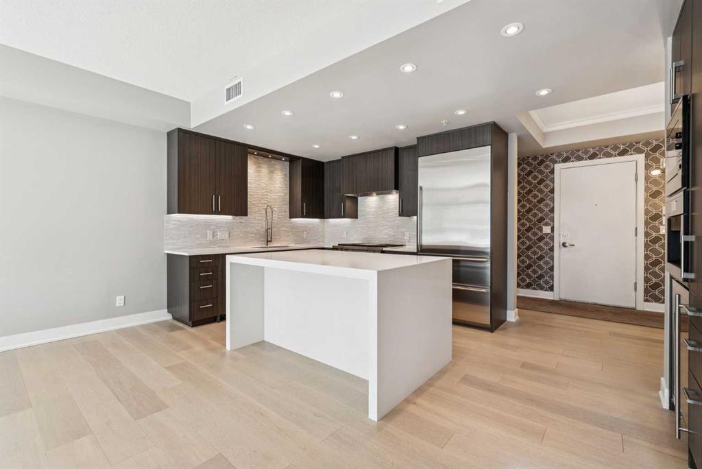 Time to indulge in the pinnacle of luxury, elegance and comfort at this exclusive premier gated condominium home in the Princeton Cityscape, a private and quiet 20 suite low-density luxury building. This stunning residence offers an unparalleled blend of sophistication and functionality featuring 2 bedrooms plus den, 2 bathrooms, 2 titled parking stalls and secure titled storage locker. The thoughtfully designed open-concept layout with high ceilings seamlessly connects the living, dining and kitchen areas, creating a perfect environment for entertaining or enjoying quality time relaxing at home. Completely renovated with high-quality finishing and meticulous attention to detail! Enjoy the many features and upgrades with wide plank hardwood flooring, quartz countertops and eat-in Island, stainless steel appliances, gas stove, built-in coffee maker and wine fridge, soft close drawers throughout, central air conditioning, electronic Hunter Douglas blinds, 2 sided gas fireplace, ensuite bathroom with steam shower, walk-in closet, high-end stack washer/dryer, den/office area, spacious south facing terrace patio, balcony, large bright floor-to-ceiling windows, built-in vacuum system, under stairs storage room, huge primary bedroom, convenient front/back entrances, generous amount of recessed lighting and views of the night time City lights! This dream come true condominium home has it all! Extraordinary heart of Eau Claire location along the south bank of the Bow River next to beautiful Prince’s Island Park and the world-class pathway system. Enjoy everything this amazing downtown community has to offer that includes the Eau Claire Athletic Club, fine dining, great restaurants, outstanding cafes and bakeries, amazing pubs, close to the plus 15 skywalk system, LRT & Transportation, Peace Bridge and just a short walk to Kensington shopping and Calgary’s vibrant city center. Time to enjoy the ultimate in downtown urban living!